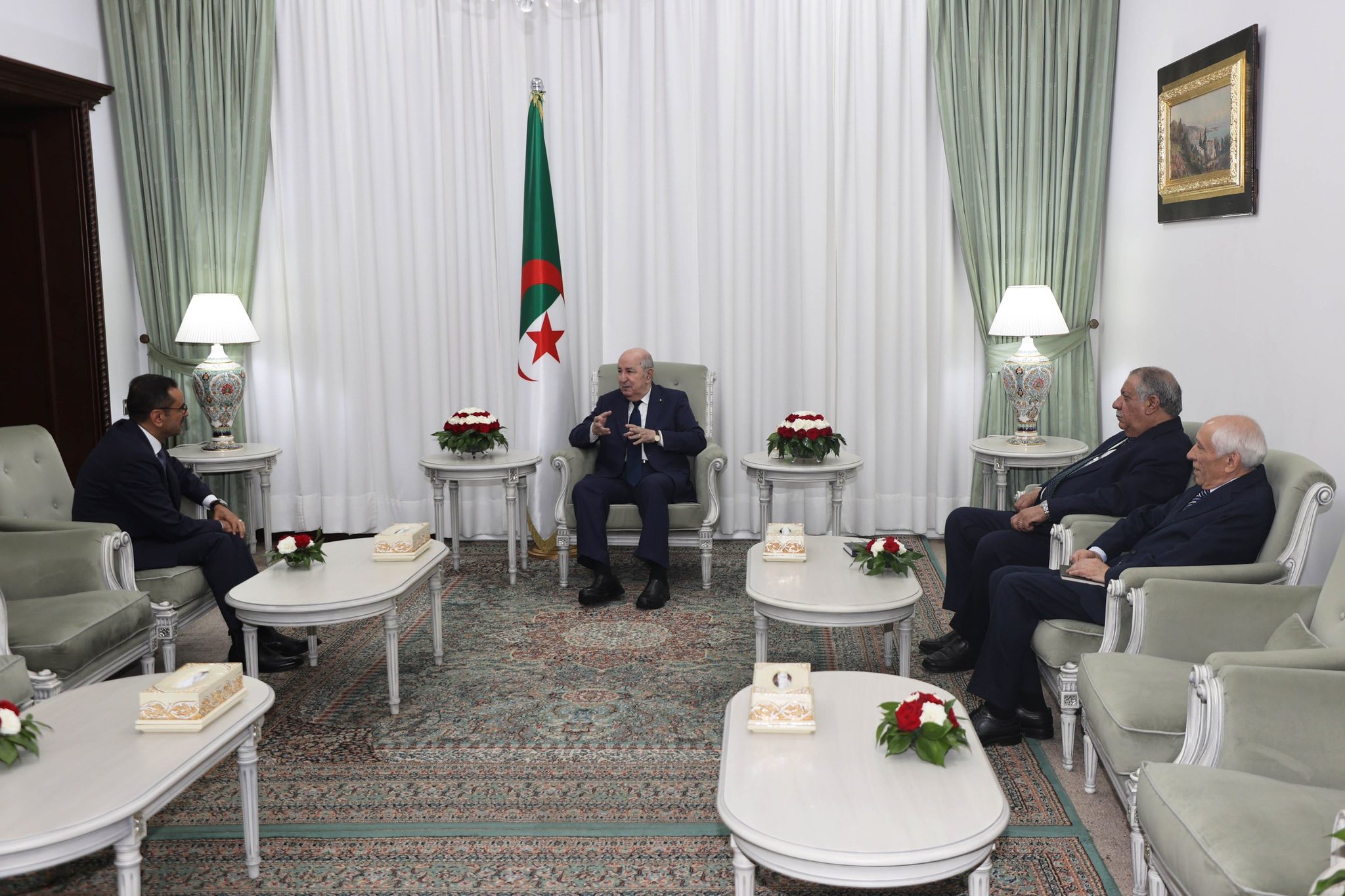 وحضر اللقاء السيد بوعلام بوعلام، مدير ديوان رئاسة الجمهورية، والسيد عمار عبة مستشار لدى رئيس الجمهورية مكلف بالشؤون الدبلوماسية.