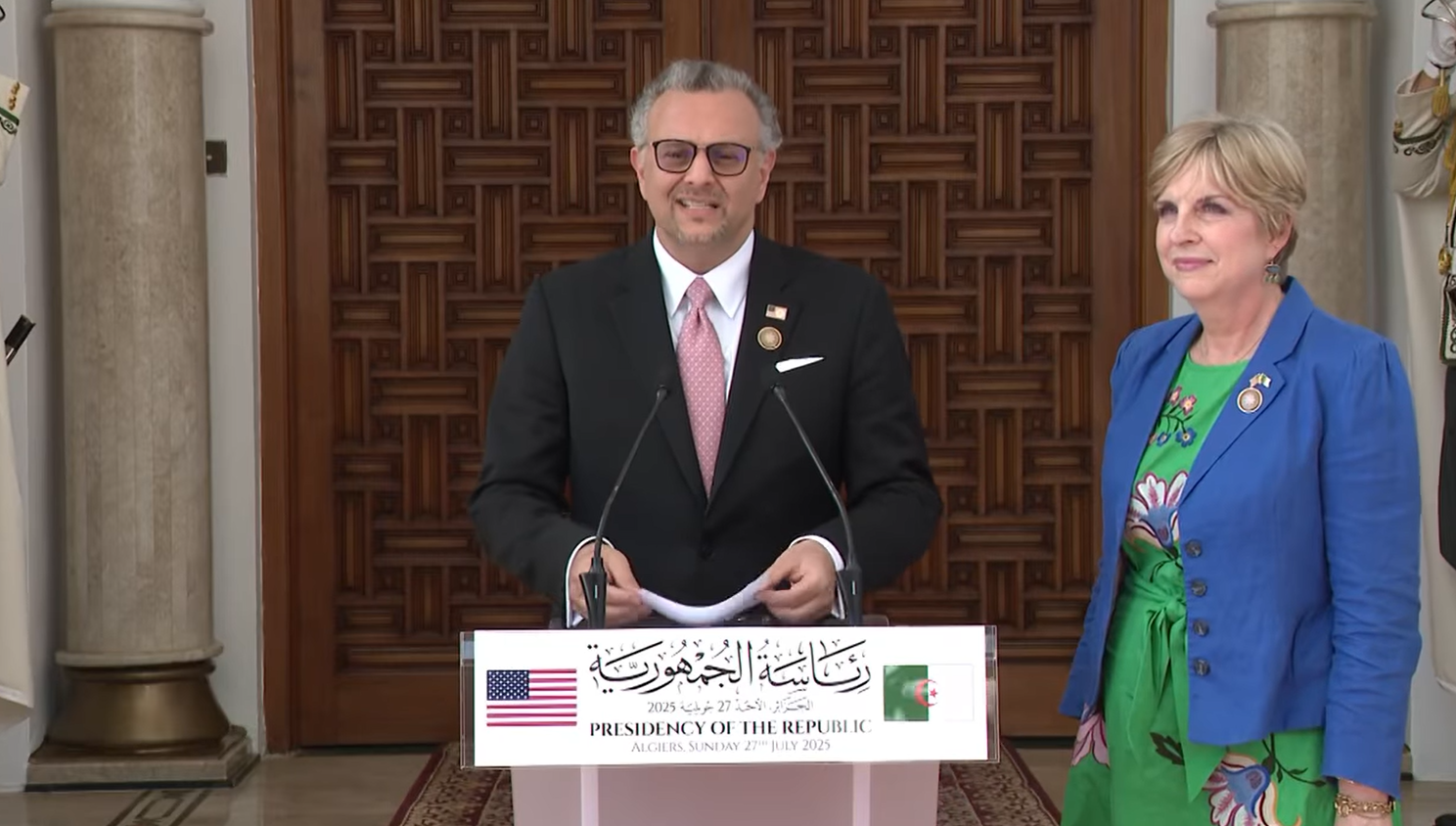 وفي تصريح للصحافة عقب استقباله من قبل الرئيس الجزائري عبد المجيد تبون، قال بولوس: “لي الشرف العظيم أن أتواجد في الجزائر نيابة عن الرئيس الأمريكي دونالد ترامب ووزير الخارجية ماركو روبيو، لتعزيز الشراكة بين البلدين”، مضيفا أن “الولايات المتحدة الأمريكية تولي أهمية بالغة لعلاقاتها مع الجزائر”.