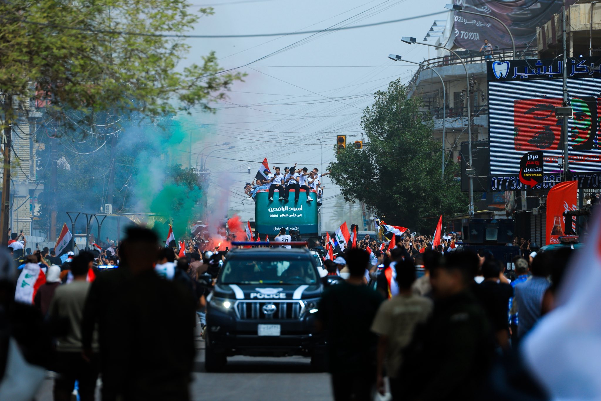 حظي لاعبو منتخب العراق باستقبال جماهيري حافل، اليوم السبت، عقب تأهلهم إلى كأس العالم 2026 لأول مرة منذ 40 عاماً، بعد فوزهم على بوليفيا بنتيجة 2-1 في نهائي الملحق العالمي.