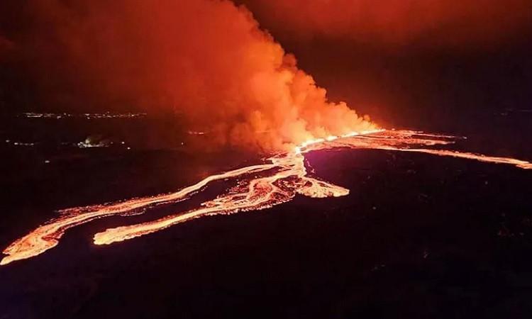 وأظهرت مشاهد تلفزيونية حية الحمم البركانية وهي تتدفق على طول شقّ أفقي.