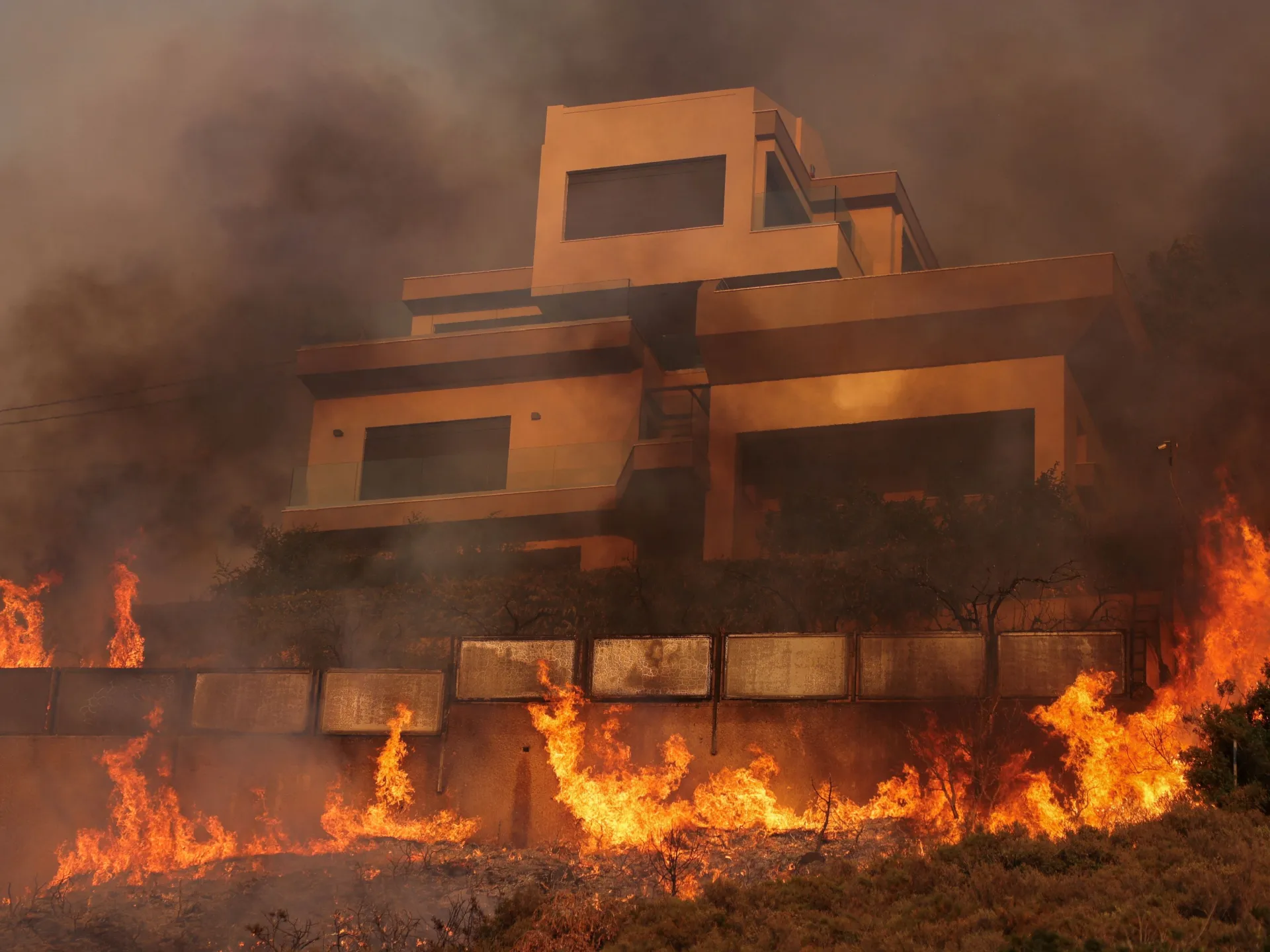 وأضاف أن النيران اقتربت من قريتي أنانتيا وأنثيا وتتجه شمالا باتجاه مطار ألكسندروبوليس، فيما احترقت منازل صباح أمس في قريتي آيتوهوري وبيفكاكس.