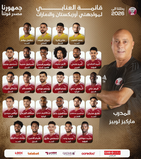كشف الإسباني ماركيز لوبيز، مدرب المنتخب القطري، قائمة “العنابي” لمواجهتي أوزبكستان والإمارات ضمن تصفيات كأس العالم 2026.