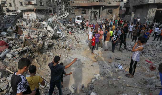 فيما أصيب أشخاص جراء استهداف طائرات الاحتلال عمارة تجارية في شارع فهمي بيك بالبلدة القديمة بمدينة غزة.