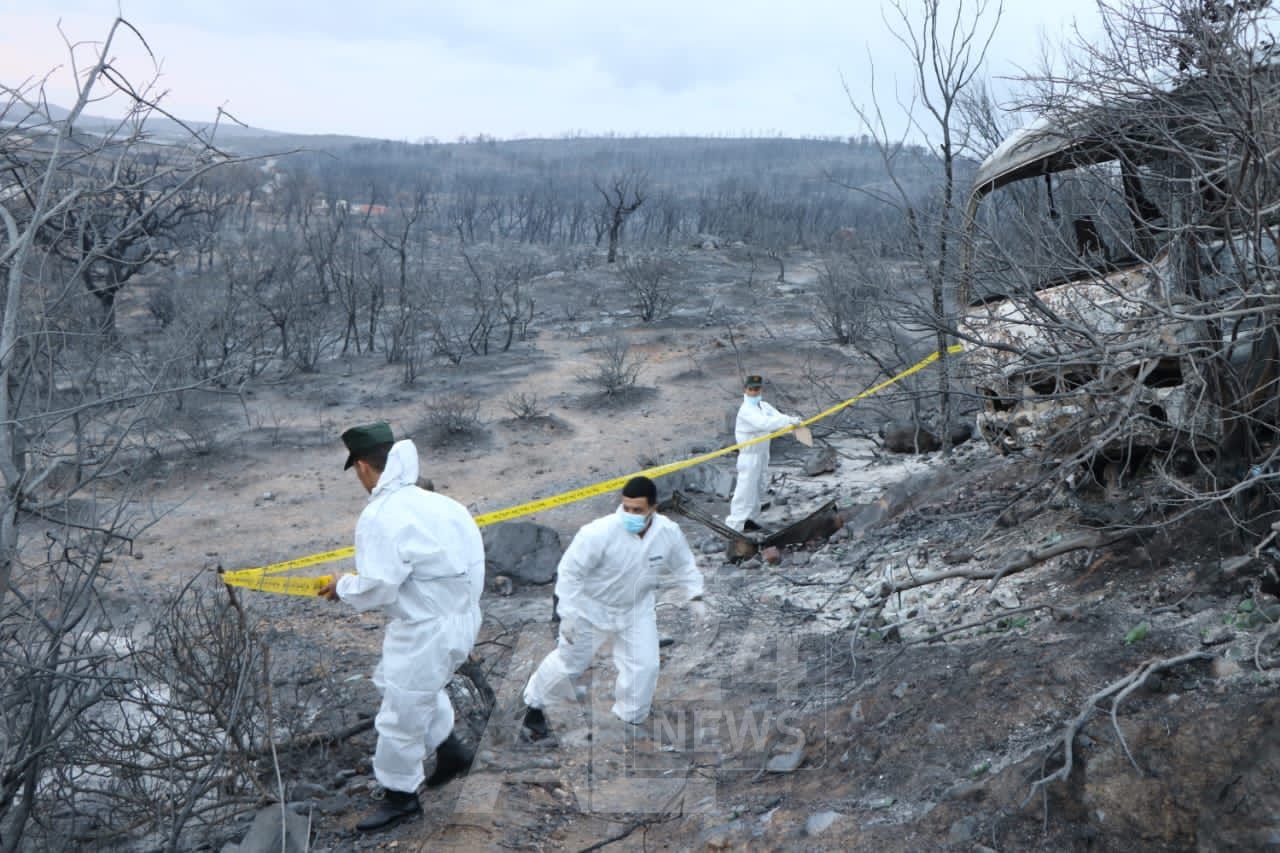 بالموازاة مع ذلك تم ارسال فريق من الخبراء التابعين لملحق المعهد الوطني للأدلة الجنائية وعلم الاجرام للدرك الوطني من اجل القيام بالمعاينات اللازمة حيث قامت في البداية بعمليات التعرف على الجثث عن طريق اخذ العينات البيولوجية ومقارنتها مع اهالي الضحايا مع ارسال هذه العينات الى المعهد الجزائري للأدلة الجنائية وعلم الاجرام للدرك الوطني ببوشاوي عن طريق رحله جوية الى الجزائر العاصمة.