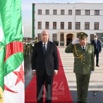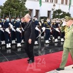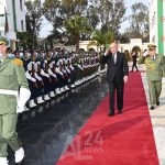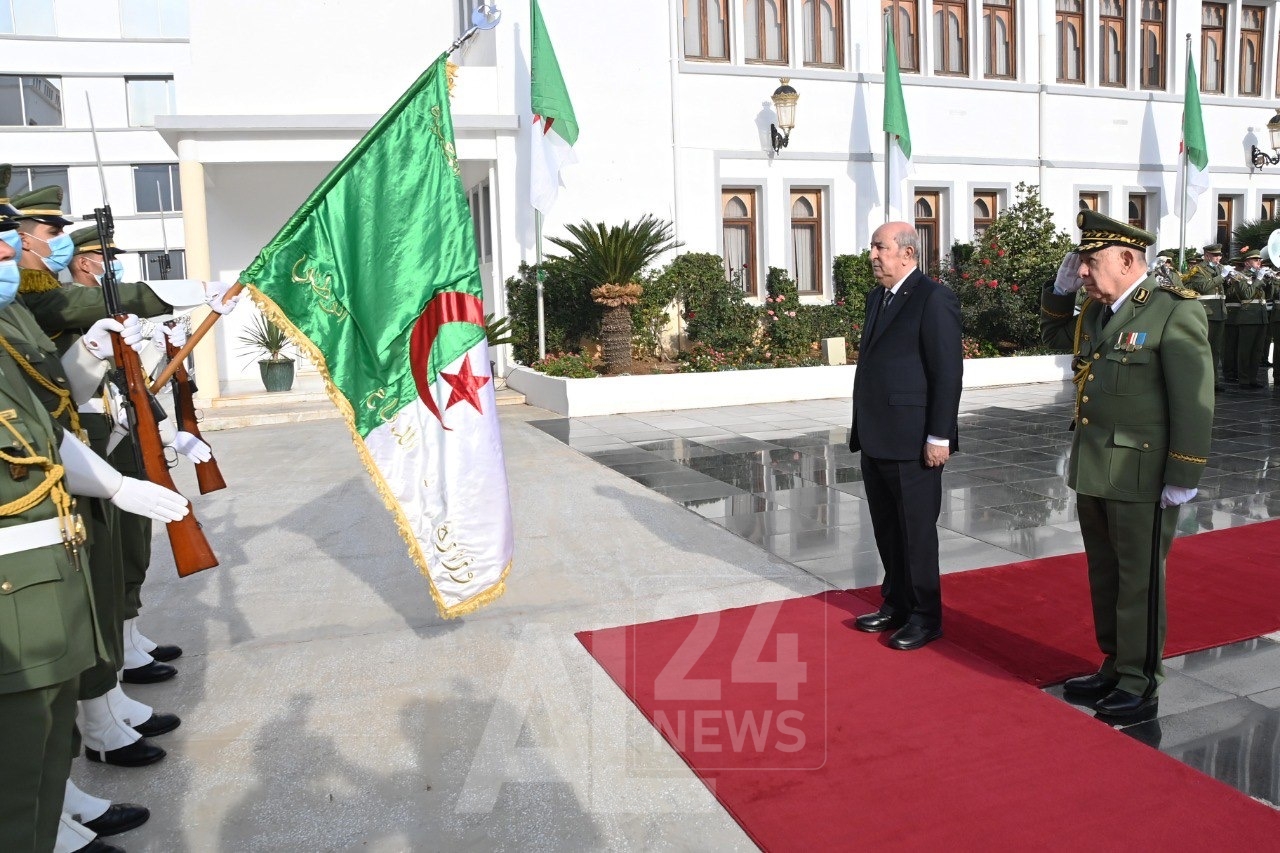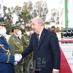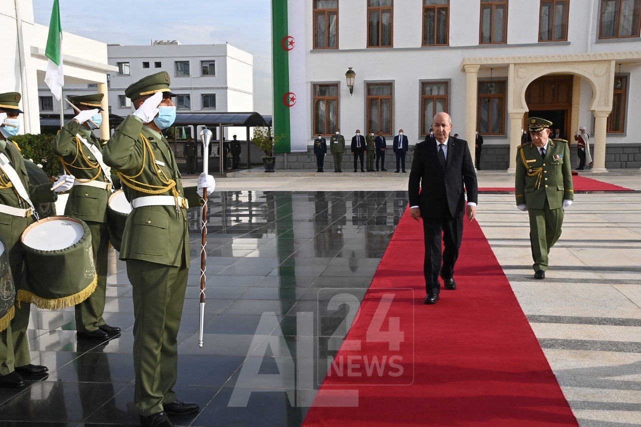 وأشار المصدر ذاته إلى أنه “بعد الاستماع للنشيد الوطني وتقديم التشريفات العسكرية له من طرف تشكيلات من مختلف قوات الجيش الوطني الشعبي، حيا السيد رئيس الجمهورية مستقبليه”.