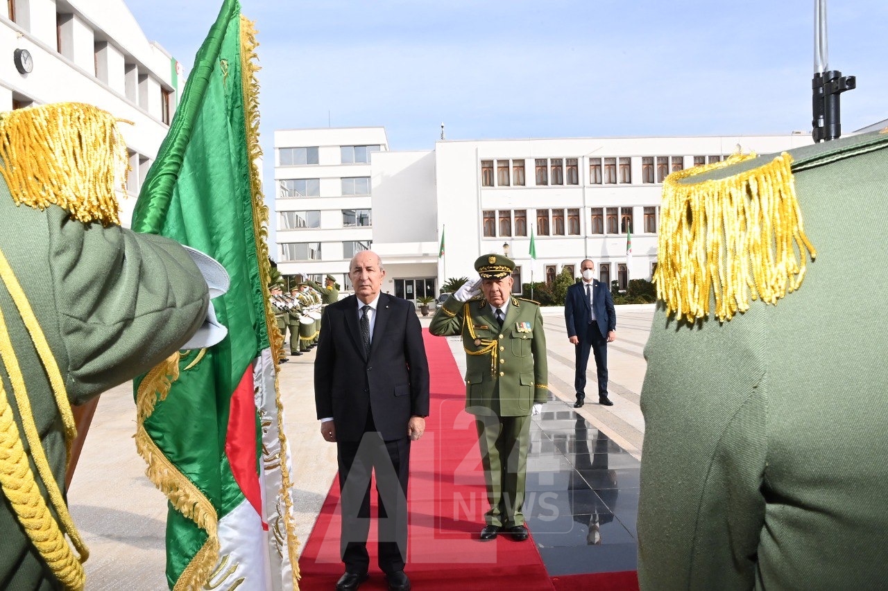 وجاء في البيان: “قام السيد رئيس الجمهورية، عبد المجيد تبون، القائد الأعلى للقوات المسلحة، وزير الدفاع الوطني، هذا اليوم الخميس 8 ديسمبر 2022، بزيارة إلى مقر وزارة الدفاع الوطني، أين كان في استقباله السيد الفريق أول السعيد شنقريحة، رئيس أركان الجيش الوطني الشعبي”.
