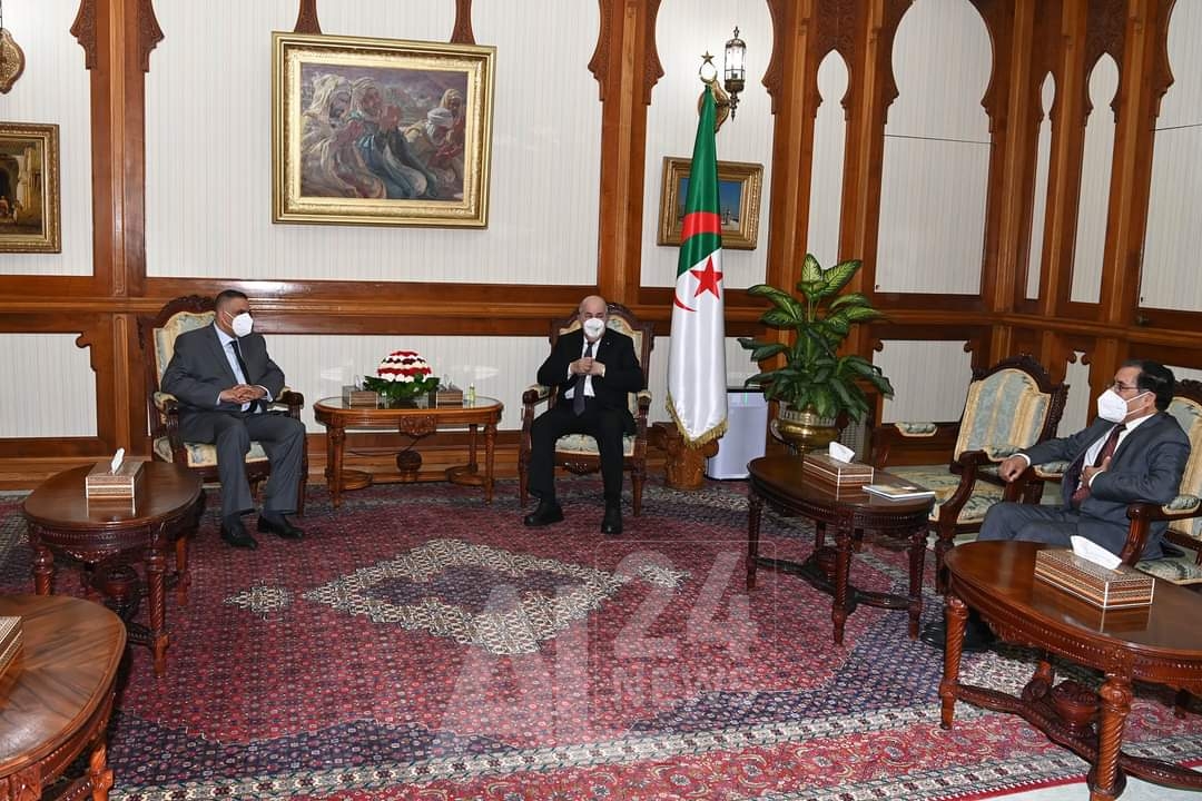 وجاء في البيان ذاته، أن الاستقبال جرى بمقر الرئاسة الجزائرية حضره مدير ديوان الرئاسة عبد العزيز خلف.