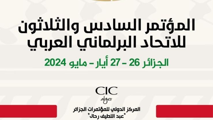 تحتضن الجزائر، يومي الـ 26 و27 مايو، بالمركز الدولي للمؤتمرات “عبد اللطيف رحال”, أشغال المؤتمر الـ 36 للاتحاد البرلماني العربي الذي سيلتئم بدعوة من رئيسه ابراهيم بوغالي، رئيس المجلس الشعبي الجزائري، حسب ما أفاد به، اليوم السبت، بيان للمجلس.