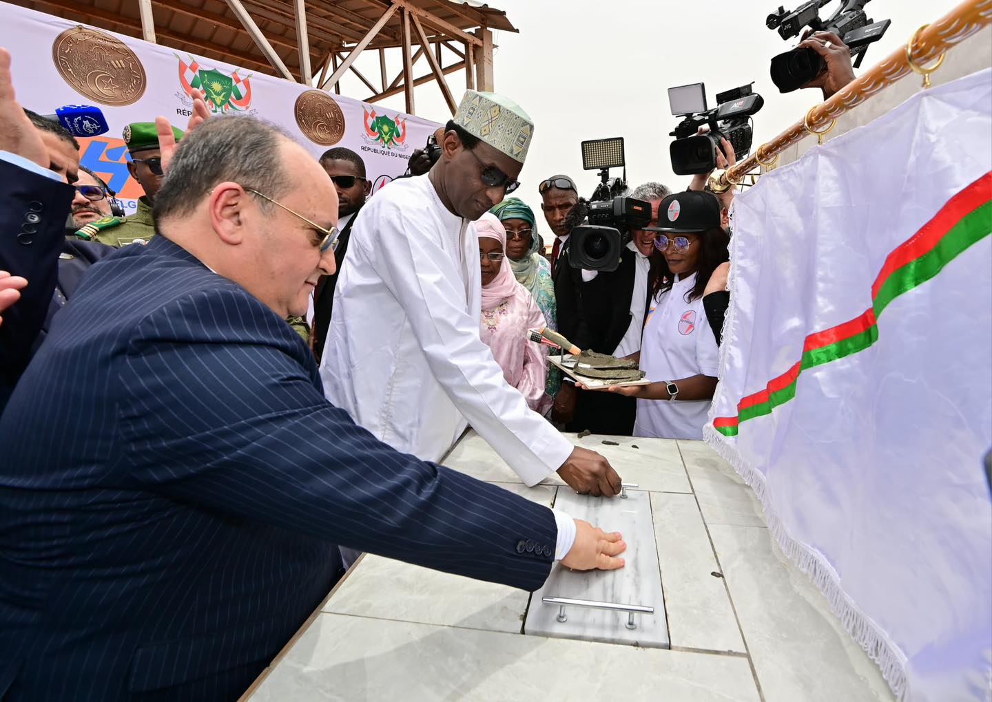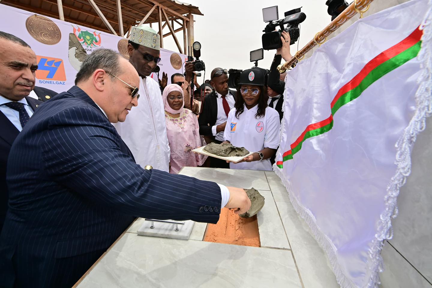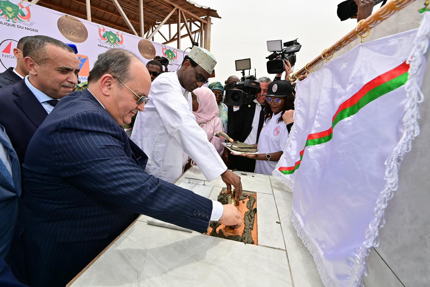 وتم وضع حجر الأساس للمشروع بحضور أعضاء من حكومة البلدين وممثلي المؤسسات المعنية بتنفيذ المشروع، وذلك في إطار الزيارة الرسمية للوزير الأول إلى النيجر، وبمناسبة انعقاد الدورة الثانية للجنة العليا الجزائرية – النيجرية للتعاون.