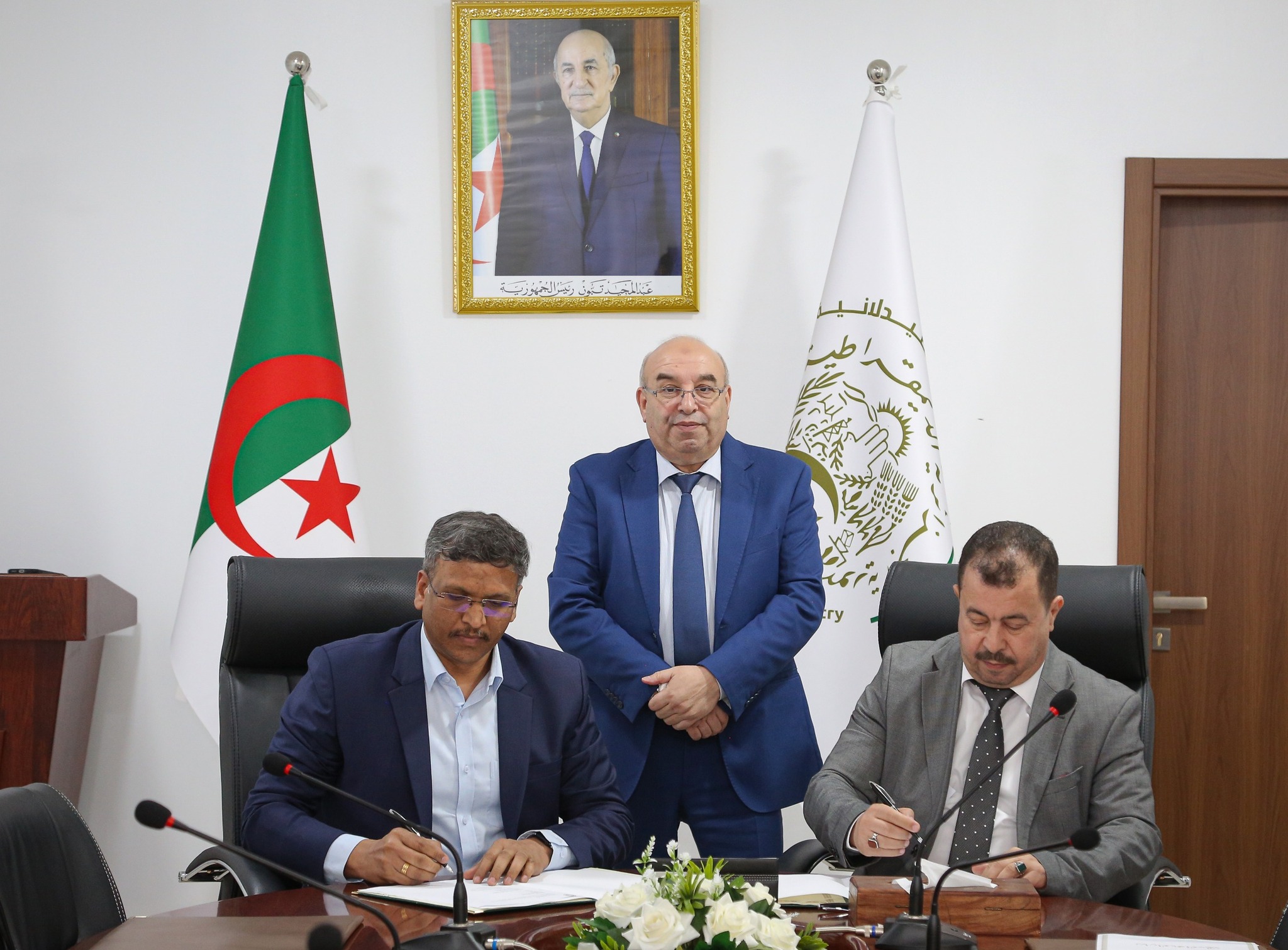 تم اليوم الخميس بالجزائر العاصمة، التوقيع على اتفاقية تعاون بين المجمع العمومي “صيدال” الجزائري وكل من المخبر الهندي للأبحاث و التطوير العالمي (أونكوسيميس) والشركة الهندية (فابتاك تكنولوجي)، بهدف نقل التكنولوجيا لإنتاج لقاحات مبتكرة بالجزائر.