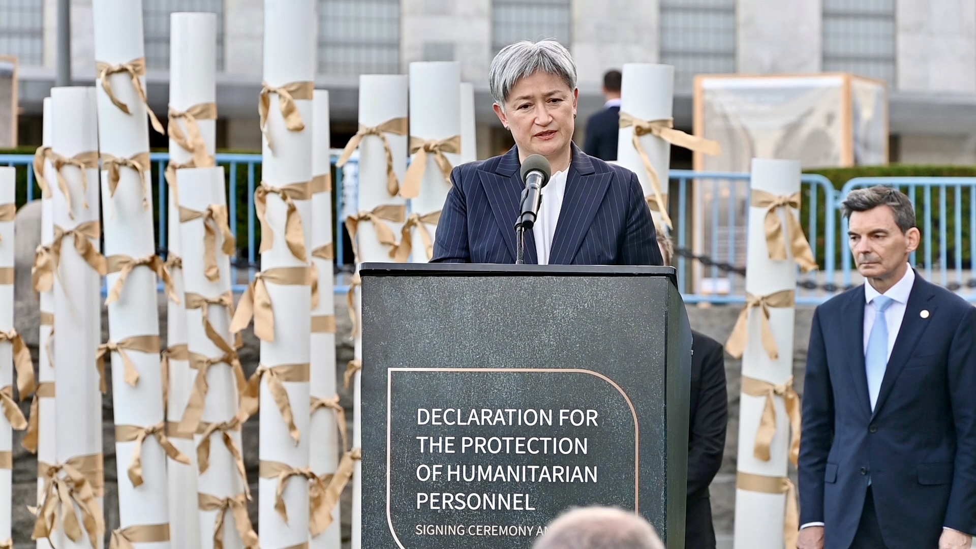 شارك وزير الدولة وزير الخارجية الجزائري، أحمد عطاف، اليوم الاثنين، في مراسم الإطلاق الرسمي للإعلان العالمي لحماية العاملين الإنسانيين التي جرت في نيويورك.