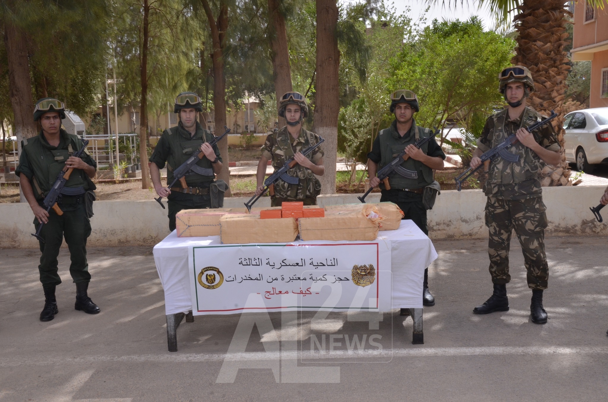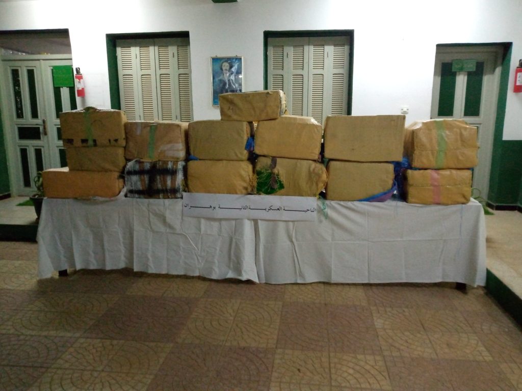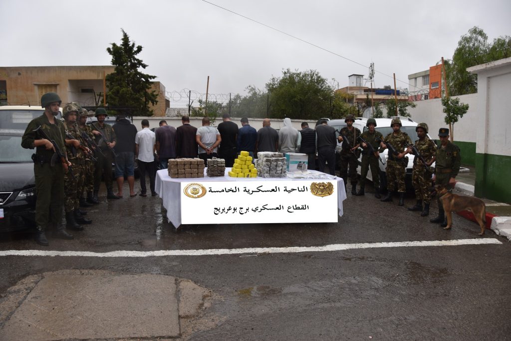 وفي إطار محاربة الجريمة المنظمة ومواصلة للجهود الحثيثة الهادفة إلى التصدي لآفة الاتجار بالمخدرات ببلادنا، أوقفت مفارز مشتركة للجيش الوطني الشعبي، بالتنسيق مع مختلف مصالح الأمن خلال عمليات مختلفة عبر النواحي العسكرية، (65) تاجر مخدرات وأحبطت محاولات إدخال كميات كبيرة من المخدرات عبر الحدود مع المغرب، تُقدر بـ (08) قناطير و(76) كيلوغرام من الكيف المعالج، فيما تم ضبط (475772) قرصا مهلوسا.