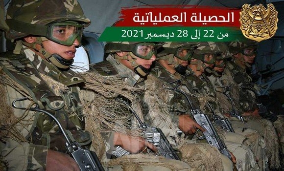 وأوضح البيان أنه “في سياق الجهود المتواصلة المبذولة في مكافحة الإرهاب ومحاربة الجريمة المنظمة بكل أشكالها, نفذت وحدات ومفارز للجيش الوطني الشعبي, خلال الفترة الممتدة من 22 إلى 28 ديسمبر 2021, عدة عمليات أسفرت عن نتائج نوعية تعكس مدى الاحترافية العالية واليقظة المستمرة والاستعداد الدائم لقواتنا المسلحة في كامل التراب الوطني”.