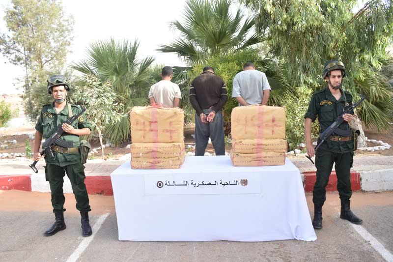 أوقفت مفارز مشتركة للجيش الجزائري، بالتنسيق مع مختلف مصالح الأمن خلال عمليات عبر النواحي العسكرية، (58) تاجر مخدرات وأحبطت محاولات إدخال قنطارين (02) و(98) كيلوغرام من الكيف المعالج عبر الحدود مع المغرب، وضبط (274192) قرص مهلوس، حسب ما أفاد به بيان وزارة الدفاع الجزائرية، اليوم الأربعاء، وذلك خلال الفترة الممتدة من 12 إلى 18 جويلية من الشهر الجاري.