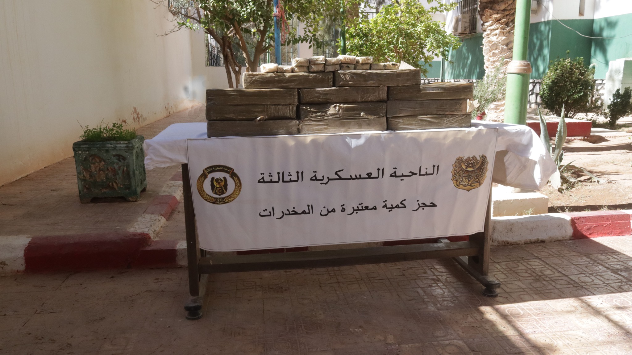 وفي إطار “محاربة الجريمة المنظمة ومواصلة للجهود الحثيثة الهادفة إلى التصدي لآفة الاتجار بالمخدرات ببلادنا، أوقفت مفارز مشتركة للجيش الوطني الشعبي، بالتنسيق مع مختلف مصالح الأمن خلال عمليات عبر النواحي العسكرية، 35 تاجر مخدرات وأحبطت محاولات إدخال كميات ضخمة من المخدرات عبر الحدود مع المغرب، تقدر بـ59.304 كيلوغرام من الكوكايين و15 قنطار و32 كيلوغرام من الكيف المعالج بالإضافة إلى 88644 قرص مهلوس”.