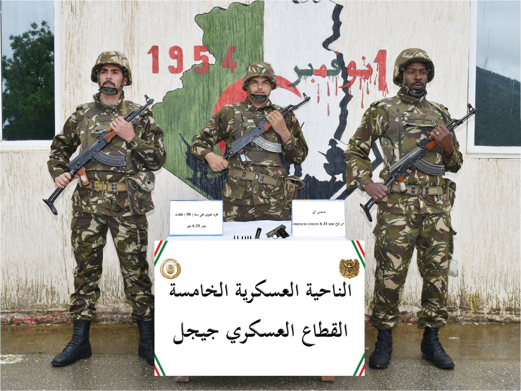 وفي إطار مكافحة الإرهاب “وبفضل جهود وحدات الجيش الوطني الشعبي، تمكنت مفارز للجيش الوطني الشعبي بالناحية العسكرية السادسة من ضبط قاذفين (2) صاروخيين من نوع RPG-7 و (4) مسدسات رشاشة من نوع كلاشينكوف، فيما أوقفت مفارز للجيش الوطني الشعبي (12) عنصر دعم للجماعات الإرهابية خلال عمليات متفرقة عبر التراب الوطني”.