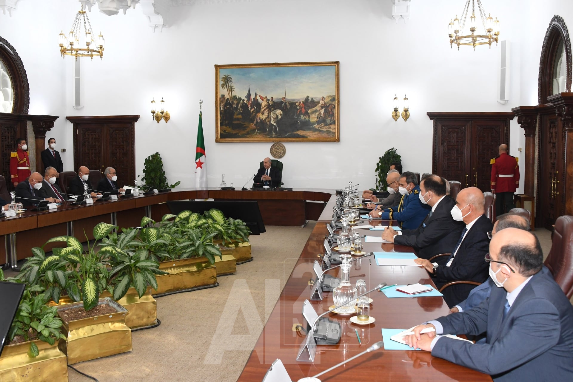 كما ذكر البيان: “يترأس، غدا، عبد المجيد تبون رئيس الجمهورية، القائد الأعلى للقوات المسلحة، وزير الدفاع الوطني اجتماعا لمجلس الوزراء، يتناول مشروعي قانونين، يتعلقان بالوقاية من الفساد، وكيفيات ممارسة الحق النقابي، وعروضا تخص آليات تعيين متصرفين للبلديات، التي تعذر فيها إجراء الانتخابات المحلية، وكذا متابعة تنفيذ لوائح تحويل الأملاك المصادرة للقطاع العمومي”.