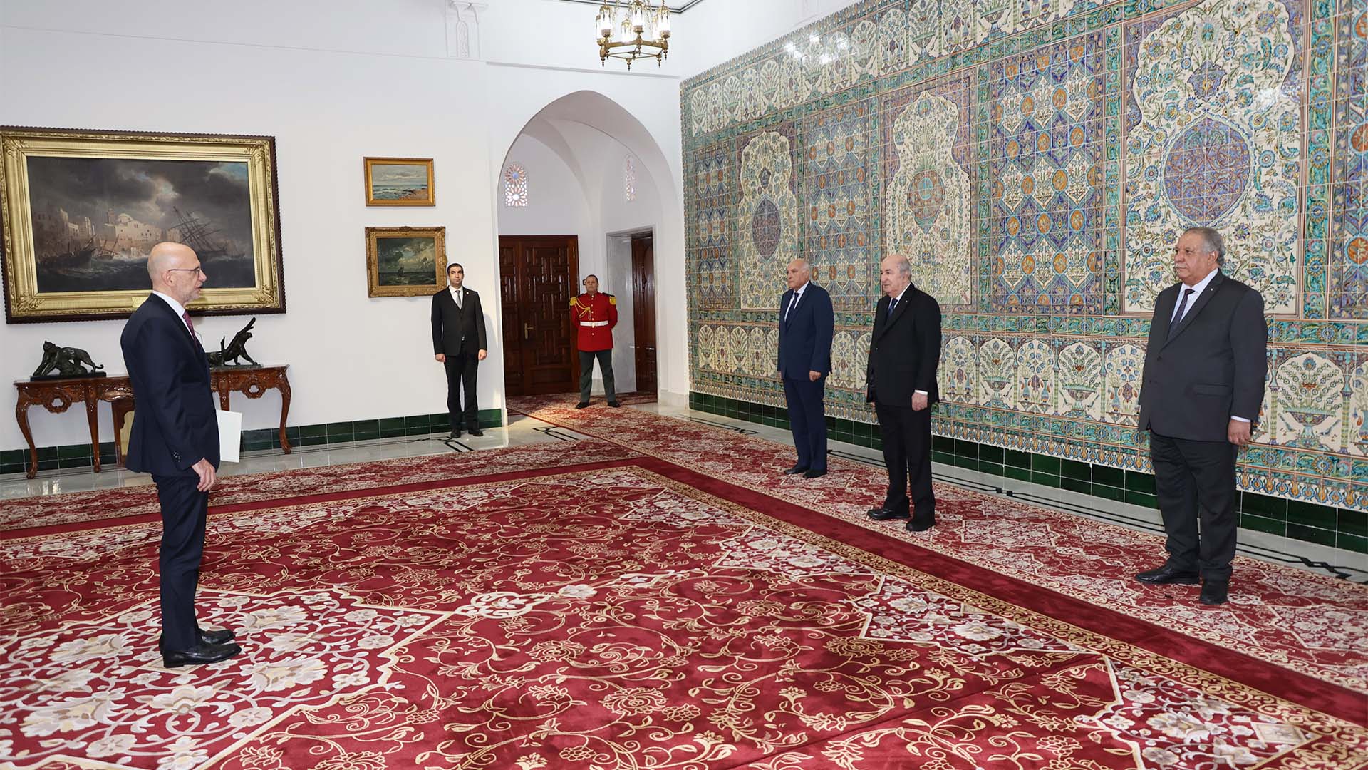 تسلّم الرئيس الجزائري، عبد المجيد تبون، اليوم الأحد، أوراق اعتماد ثلاثة سفراء جدد.