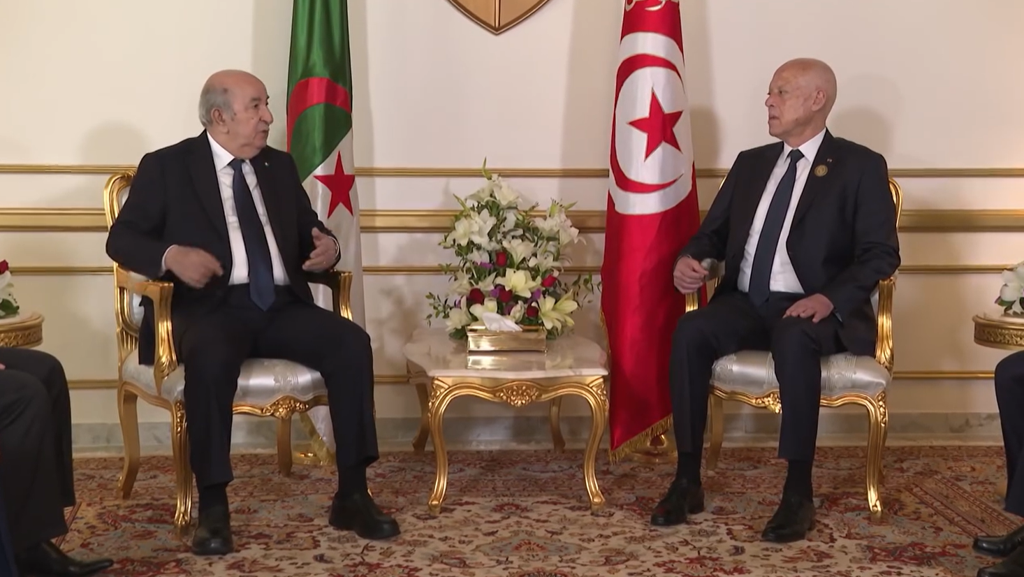 أجرى الرئيس الجزائري، عبد المجيد تبون، اليوم الاثنين بتونس، محادثات ثنائية مع الرئيس التونسي، قيس سعيد.