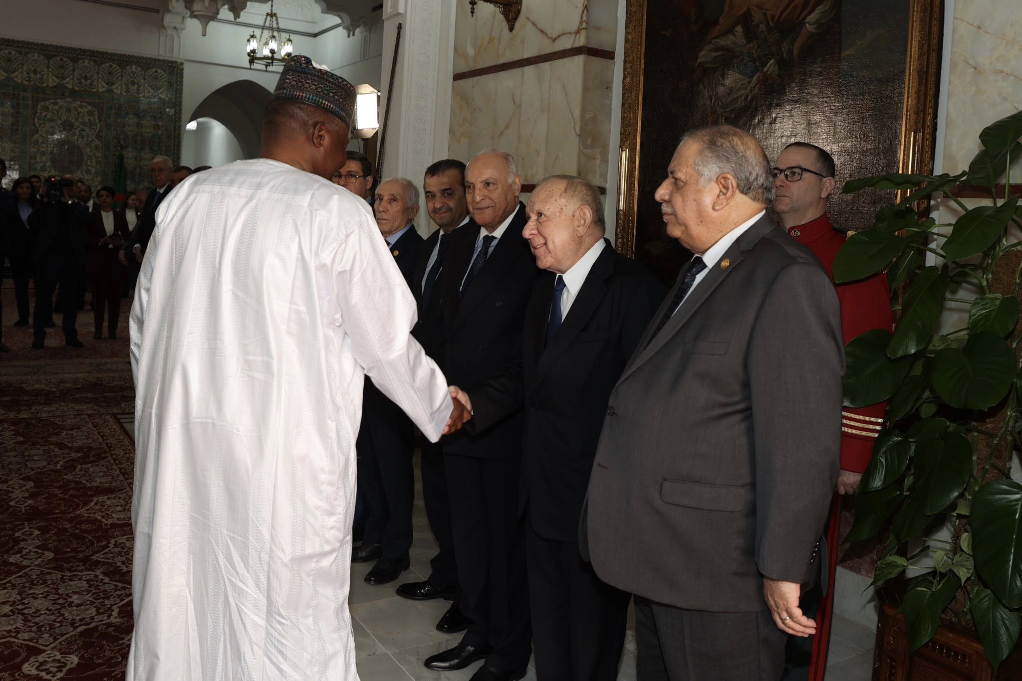خصّ الرئيس الجزائري، عبد المجيد تبون، اليوم الاثنين، رئيس جمهورية النيجر رئيس الدولة، عبد الرحمن تياني، باستقبال رسمي في قصر المرادية.