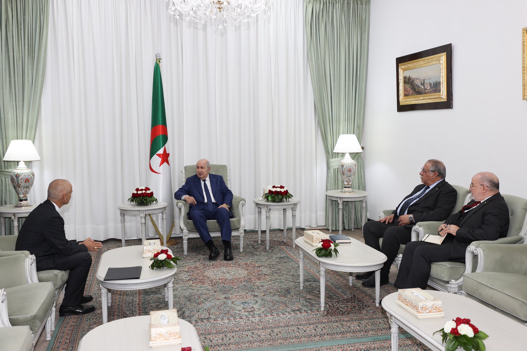 وحسب بيان للرئاسة الجزائرية، فقد حضر اللقاء مدير ديوان رئاسة الجمهورية بوعلام بوعلام، ووزير الشؤون الدينية والأوقاف، يوسف بلمهدي.