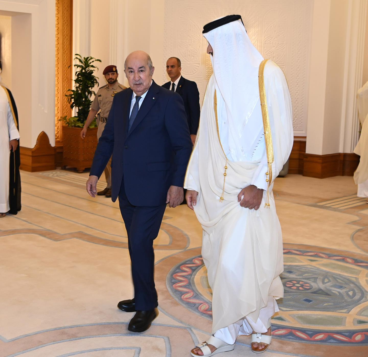 الرئيس الجزائري يستقبل بالدوحة من طرف أمير دولة قطر