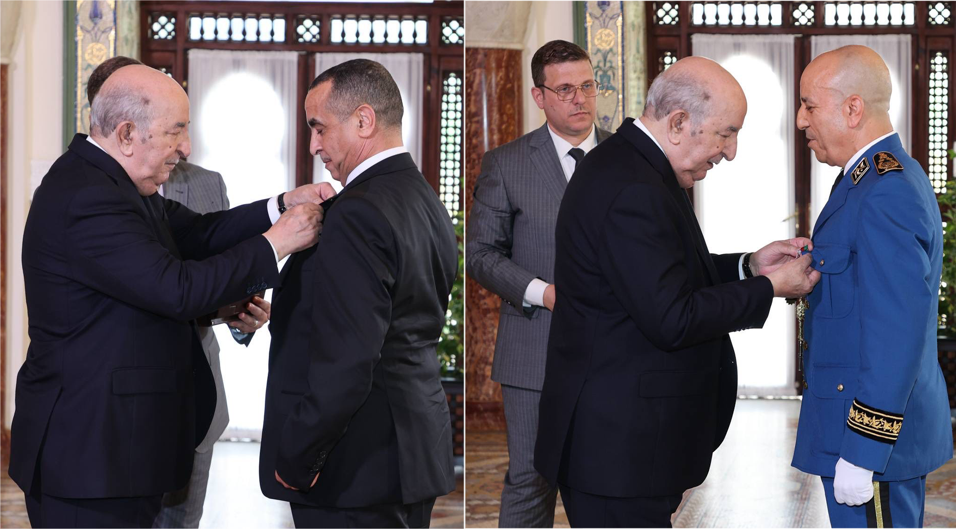 أسدى الرئيس الجزائري، عبد المجيد تبون، صدر مصف الاستحقاق الوطني، اليوم الخميس بقصر الشعب بالجزائر العاصمة، وساما بدرجة عشير لكل من المدير العام للأمن الوطني الجزائري، علي بداوي، والرئيس المدير العام للشركة الجزائرية للكهرباء والغاز (سونلغاز)، مراد عجال.