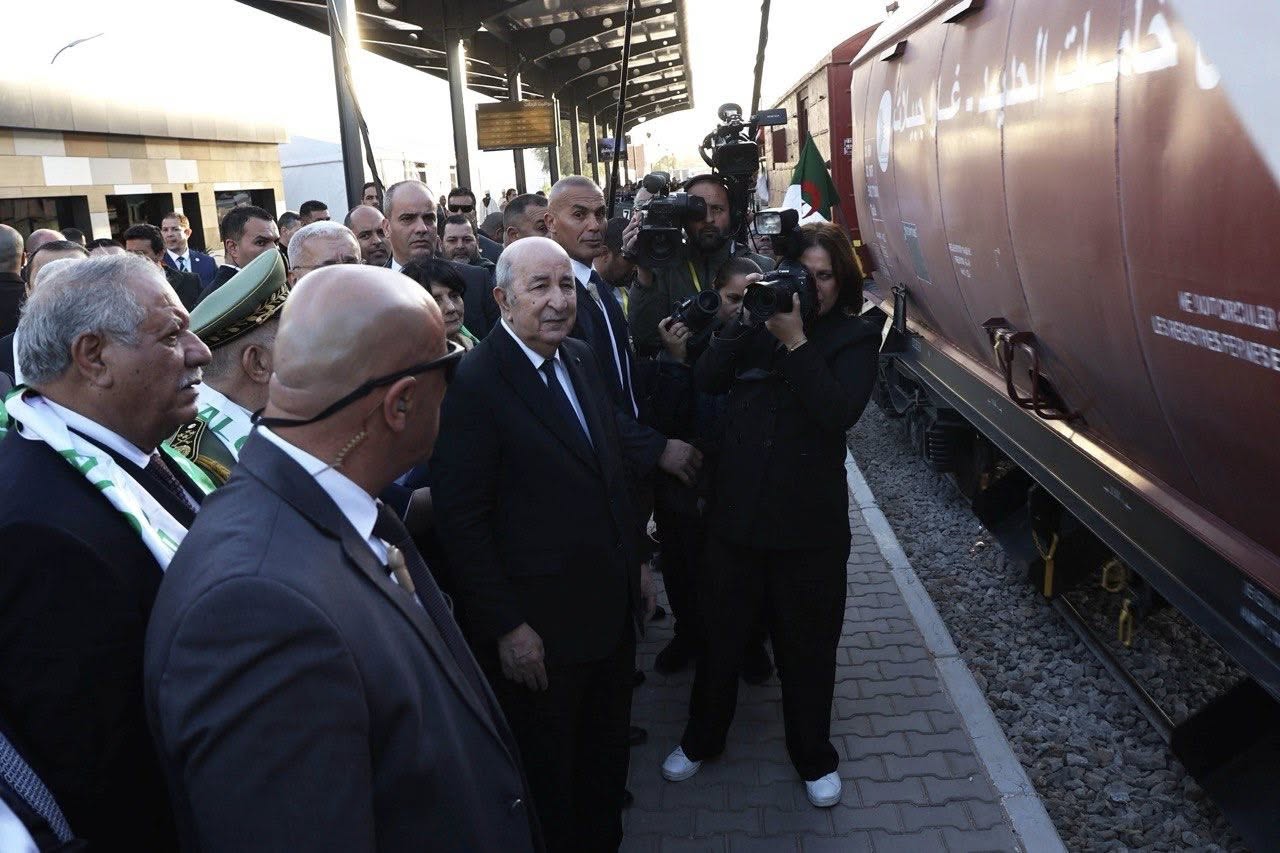 واستقبل الرئيس الجزائري عبد المجيد تبون، أول رحلة لنقل المسافرين قادمة من محطة تندوف.