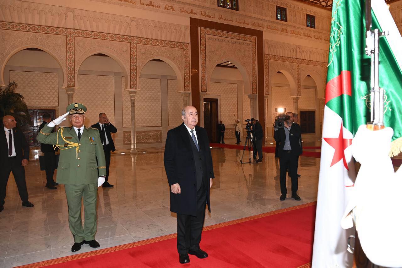 وكان في استقبال الرئيس الجزائري بمطار هواري بومدين الدولي، “الوزير الأول، نذير العرباوي والوزير المنتدب لدى وزير الدفاع الوطني، رئيس أركان الجيش الوطني الشعبي، الفريق أول السعيد شنقريحة ومدير ديوان رئاسة الجمهورية، بوعلام بوعلام.”