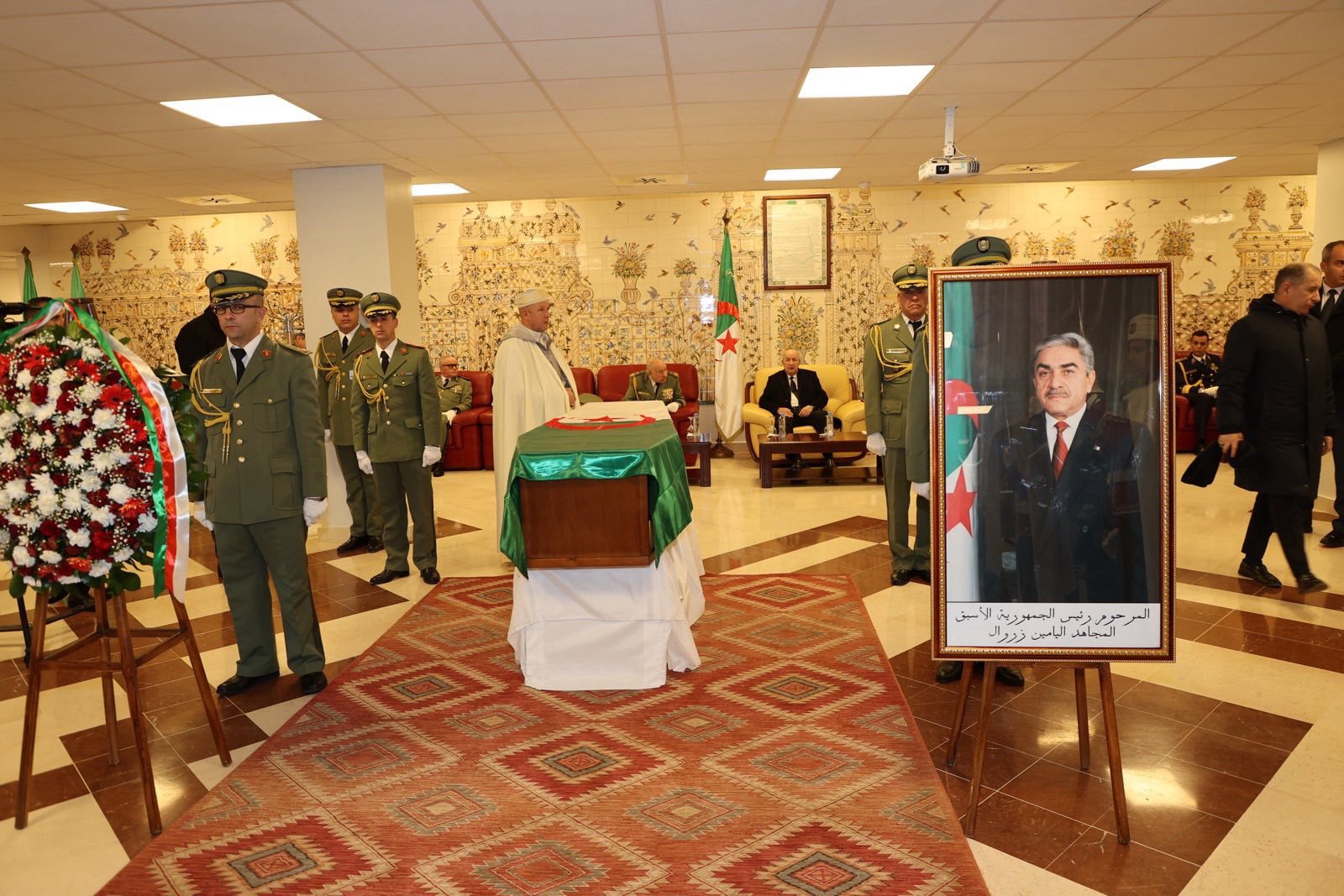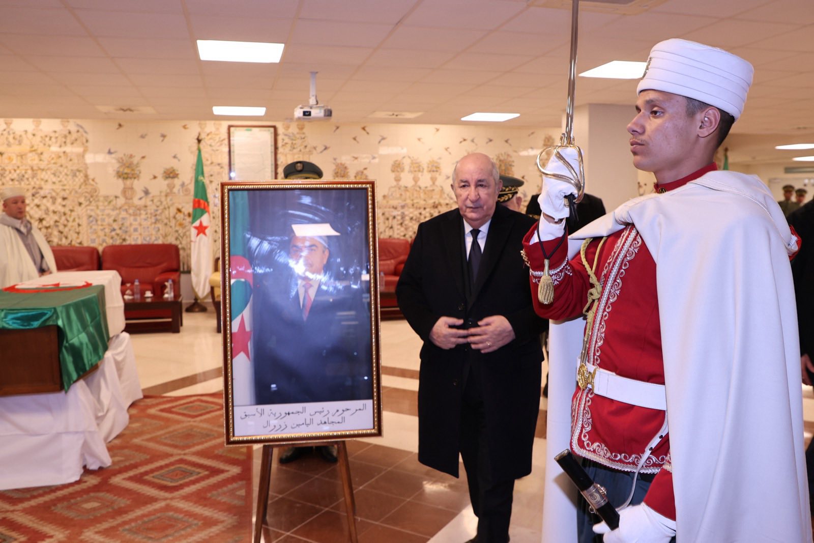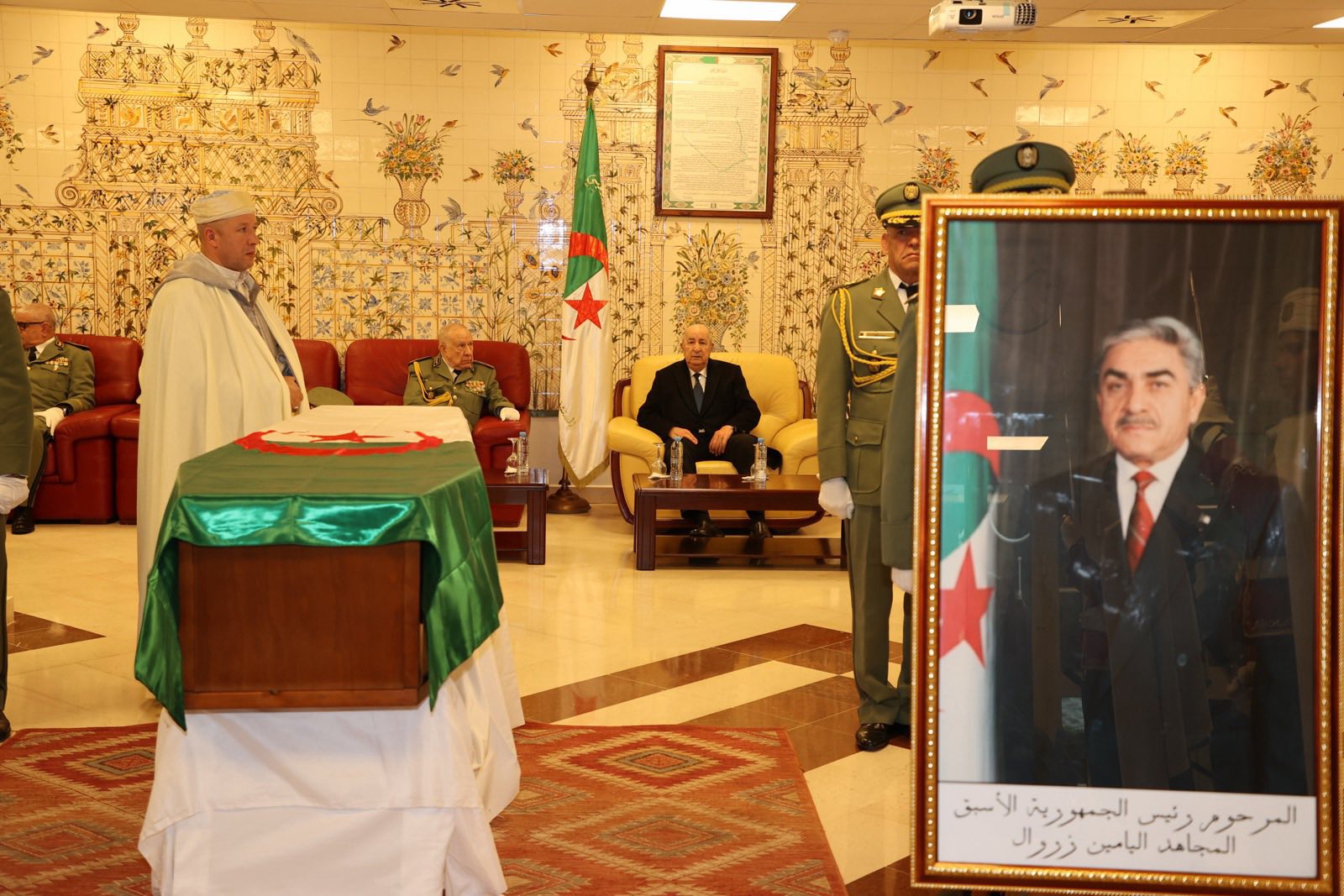 الرئيس الجزائري يلقي النظرة الأخيرة على جثمان المرحوم اليامين زروال