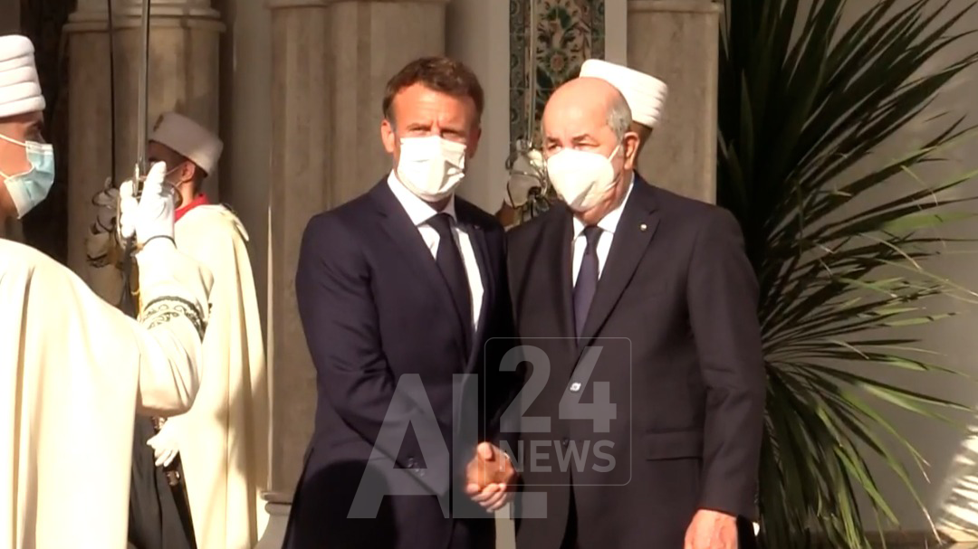 وقد شرع الرئيس ماكرون، بعد ظهر اليوم الخميس، في زيارة رسمية إلى الجزائر على رأس وفد هام، وكان في استقباله لدى وصوله الى مطار هواري بومدين الدولي الرئيس الجزائري عبد المجيد تبون.