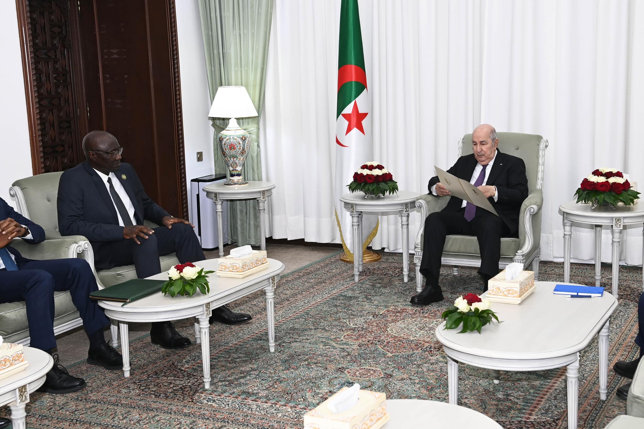 وجاء في البيان: “رئيس الجمهورية السيد عبد المجيد تبون القائد الأعلى للقوات المسلحة وزير الدفاع الوطني يستقبل السيد بيرام ديوب وزير القوات المسلحة لجمهورية السنغال، المبعوث الخاص للرئيس السنغالي، حاملا رسالة للسيد رئيس الجمهورية”.