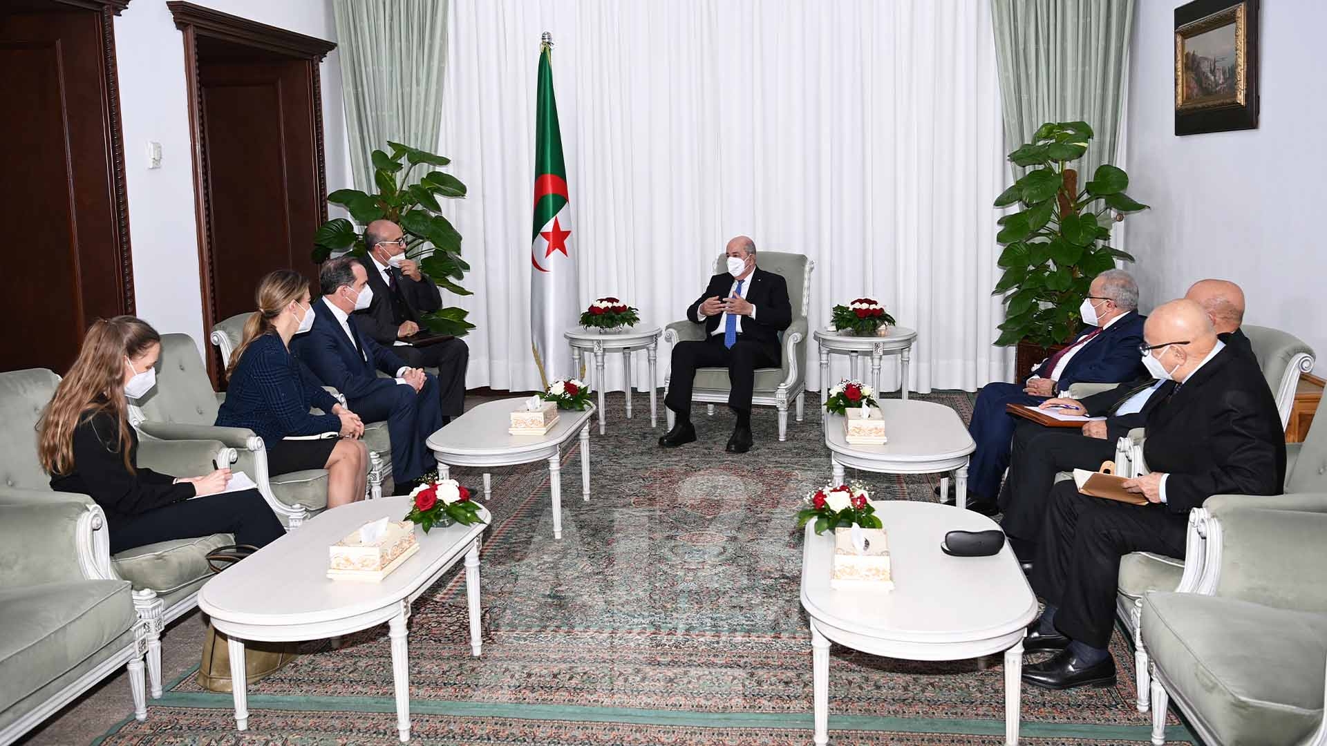 استقبل الرئيس الجزائري، عبد المجيد تبون، اليوم، منسّق شؤون الشرق الأوسط، وشمال إفريقيا، بمجلس الأمن القومي الأمريكي، بريت ماكفورك.