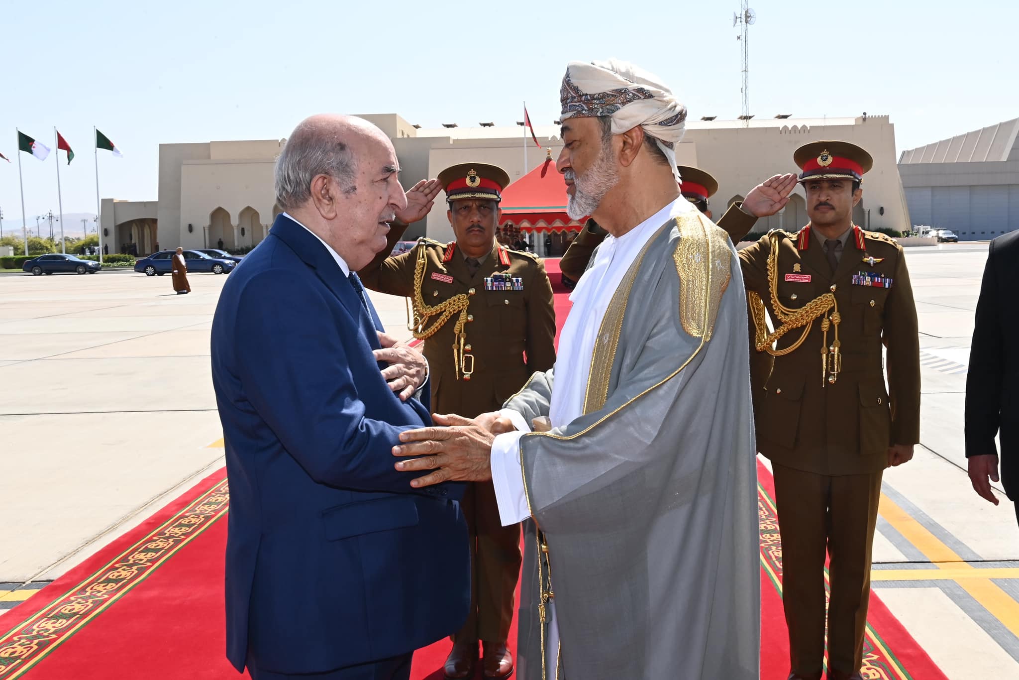 وكان في توديع الرئيس تبون بمطار مسقط الدولي، السلطان العماني هيثم بن طارق آل سعيد.