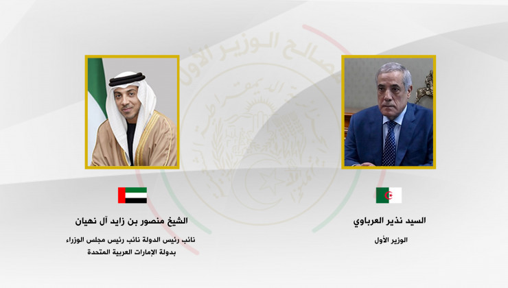 وأوضح المصدر ذاته أن “الوزير الأول السيد نذير العرباوي، تلقى مكالمة هاتفية من الشيخ منصور بن زايد آل نهيان، نائب رئيس الدولة، نائب رئيس مجلس الوزراء بدولة الإمارات العربية المتحدة، حمله نقل تحياته وتحيات وتقدير اخيه رئيس الدولة سمو الشيخ محمد بن زايد آل نهيان، لرئيس الجمهورية السيد عبد المجيد تبون، متمنيا للجزائر والشعب الجزائري المزيد من التقدم والرخاء تحت قيادته الحكيمة”.
