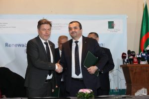 يذكر أنه أول أمس قد أشرف وزير الطاقة الجزائري، محمد عرقاب، ونائب المستشار الفيدرالي الألماني، وزير الاقتصاد وحماية المناخ، روبرت هابيك، على مراسم الامضاء لعقد تجاري بين مجمع سوناطراك والشركة الألمانية VNG لتزويد الجزائر ألمانيا بالغاز الطبيعي، كما تمّ “الامضاء على مذكرة تفاهم بين شركة سونلغاز والجمعية الألمانية للصناعة في مجال الطاقة الشمسية من أجل تعزيز القدرات الوطنية في المجال التقني عبر تبادل الخبرات الفنية، التي ستمكن على المدى المتوسط التحكم في كل المهارات، بهدف التصنيع والإدماج المحلي للمعدات في مجال الطاقة الشمسية، وفق بيان لوزارة الطاقة الجزائرية.
