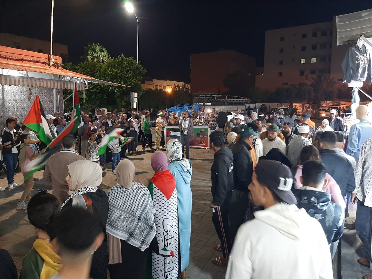 وأضاف ذات البيان أن المتظاهرين “جدّدوا رفضهم للتطبيع مع الاحتلال الغاشم، مطالبين الدولة المغربية بوقف كل اتفاقيات العار مع الكيان المجرم”.