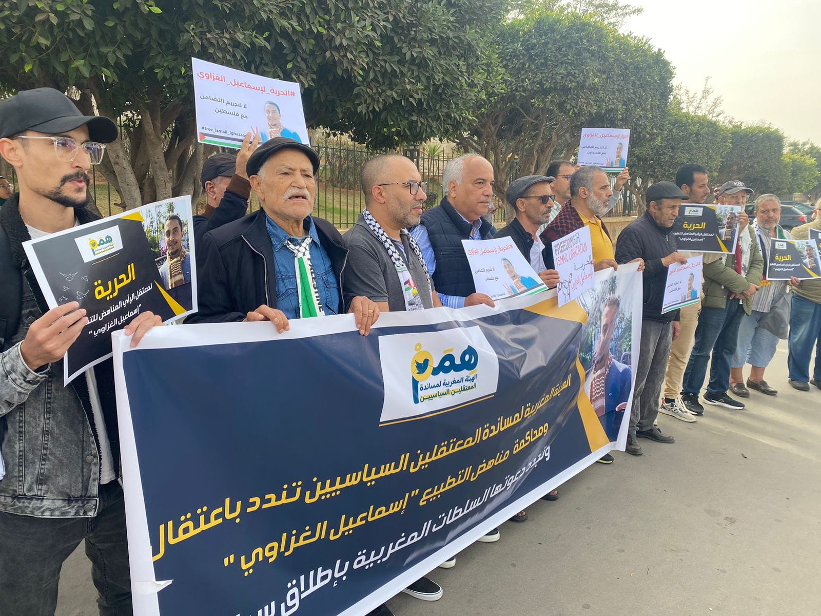 مع المعتقلين السياسيين، رفعت صور الغزاوي ولافتات تستنكر اعتقاله وتجدّد مطالبة السلطات المغربية بالإفراج عنه.