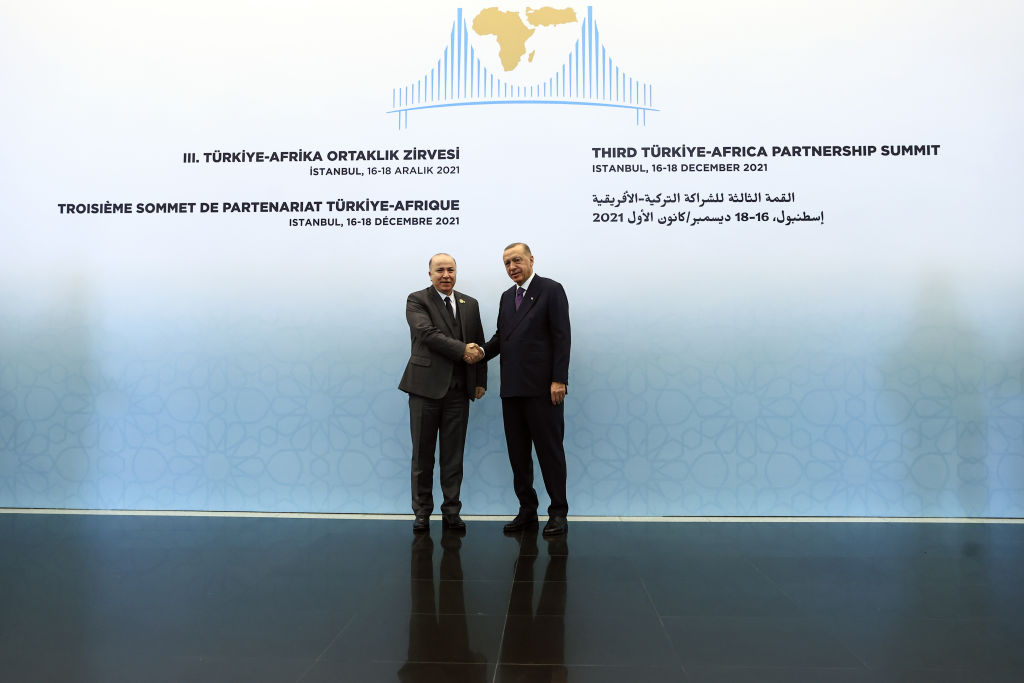 وتولي الجزائر اهتماما كبيرا للشراكة الإفريقية -التركية، التي تجمع من جهة، قارة هي جزء لا يتجزأ منها، ونعمل دون كلل من أجل استقرارها وتنميتها المتعددة الأبعاد وازدهار شعوبها، ومن ناحية أخرى، الجمهورية التركية التي تجمعنا بها علاقات تاريخية وقواسم حضارية، ثقافية واجتماعية، نسجت فصولها عبر عدة قرون والتي تشكل لنا موروثا مشتركا نستند عليه لبناء شراكة تعود بالنفع على بلدينا.