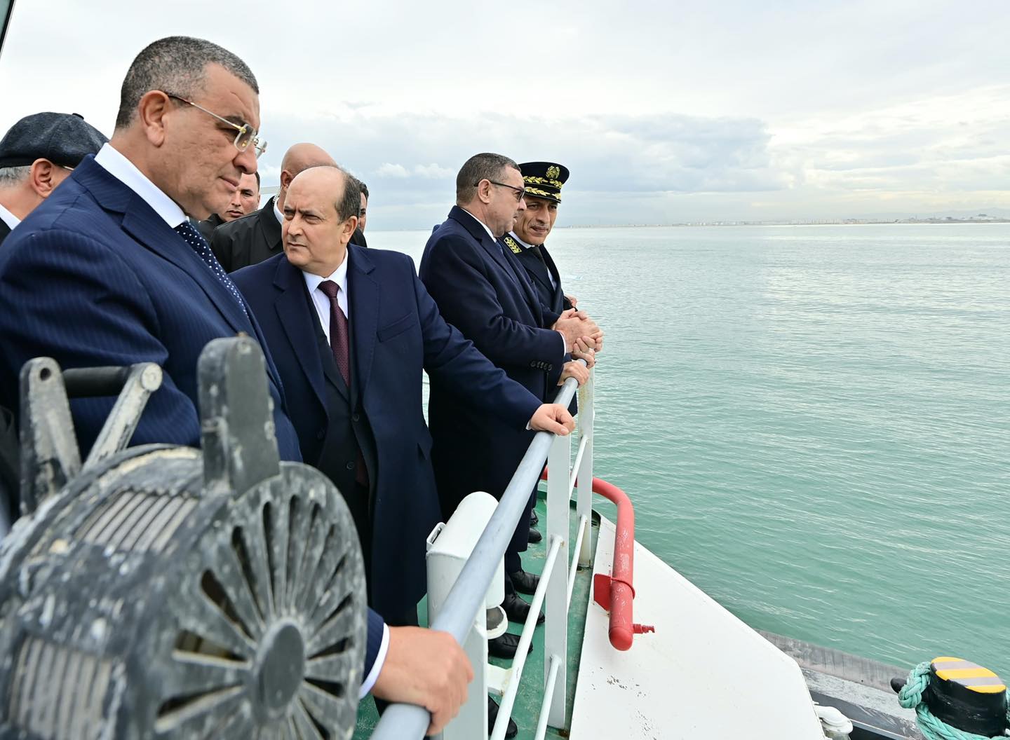 ورافق الوزير الأول في هذه الزيارة كلّ من وزير الدولة، وزير المحروقات والمناجم، محمد عرقاب، ووزير الداخلية والجماعات المحلية والنقل، سعيد سعيود، ووزير الأشغال العمومية والمنشآت القاعدية، عبد القادر جلاوي، ووزير الصناعة يحيى بشير، ووزير المجاهدين وذوي الحقوق عبد المالك تاشريفت. وخلال هذه الزيارة، تلقّى الوزير الأول عرضًا تقنيًا مفصّلًا حول مدى تقدّم الأشغال، شمل مختلف مراحل الإنجاز، والآجال التعاقدية، والتدابير المتخذة لضمان مطابقة المشروع للمعايير التقنية المعتمدة. وفي السياق، أشار بيان الوزارة الاولى إلى أن الوزير الأول أسدى تعليمات إلى مختلف المؤسسات المتدخلة في إنجاز المشروع، شدّد فيها على الالتزام الصارم بآجال الإنجاز، واحترام دفاتر الشروط، وتسخير الموارد البشرية والمادية اللازمة، بما يضمن استلام الرصيف المنجمي في الآجال المحددة ووفق معايير الجودة والسلامة المعمول بها.