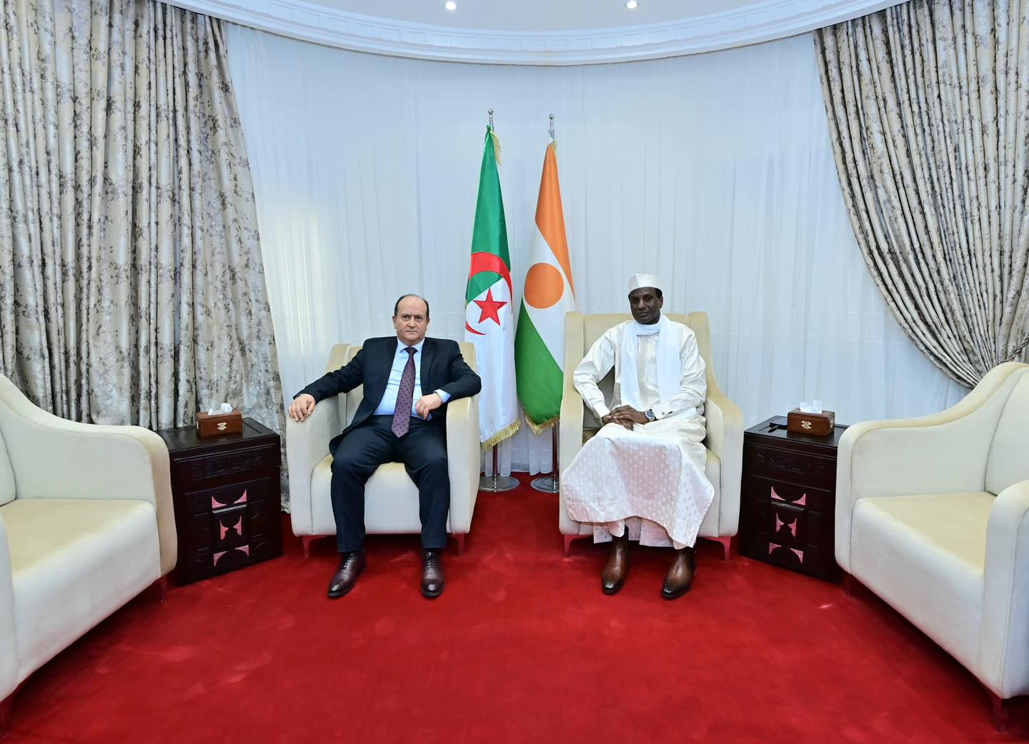 وقد جرى هذا اللقاء في إطار الزيارة الرسمية التي يقوم بها سيفي غريب، على رأس وفد وزاري هام، إلى جمهورية النيجر، وذلك بتكليف من الرئيس الجزائري عبد المجيد تبون، بمناسبة انعقاد الدورة الثانية للجنة المشتركة الكبرى الجزائرية-النيجرية.
