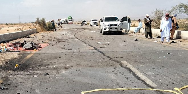 وصرح فيروز جمال شاه وزير بالمحافظة ان الانتحاري صدم بدراجته شاحنة برتل عسكري.