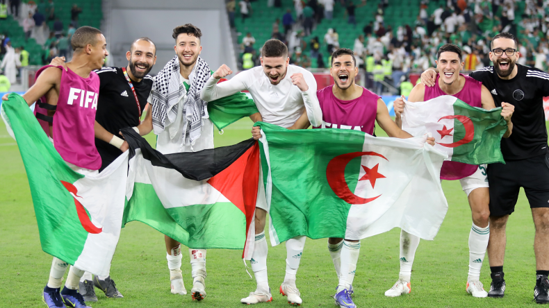 وأكد نشطاء فلسطينيون أن المنتخب الجزائري يبقى المنتخب العربي الوحيد الذي يحرص في كل مرة على رفع العلم الفلسطيني