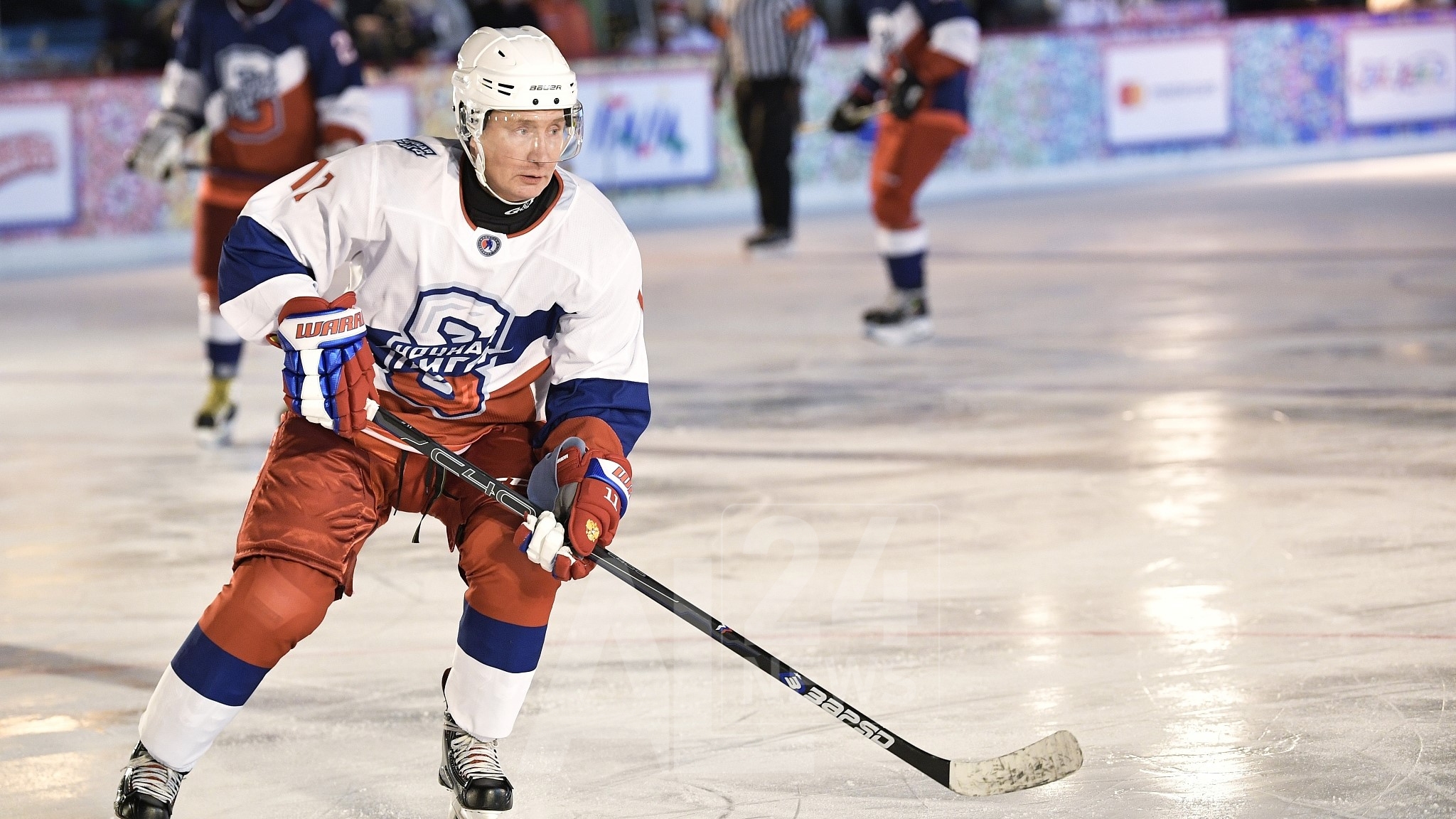 لعب الرئيس الروسي فلاديمير بوتين ونظيره البيلاروسي ألكسندر لوكاشينكو لعبة الهوكي على الجليد بعد محادثات في روسيا