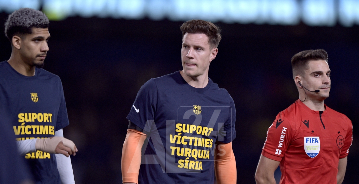 وكُتب على قميص نادي برشلونة: “دعماً للضحايا في تركيا وسوريا”، فيما ظهر على قمصان لاعبي فياريال “نحن معكم، سوريا وتركيا”.