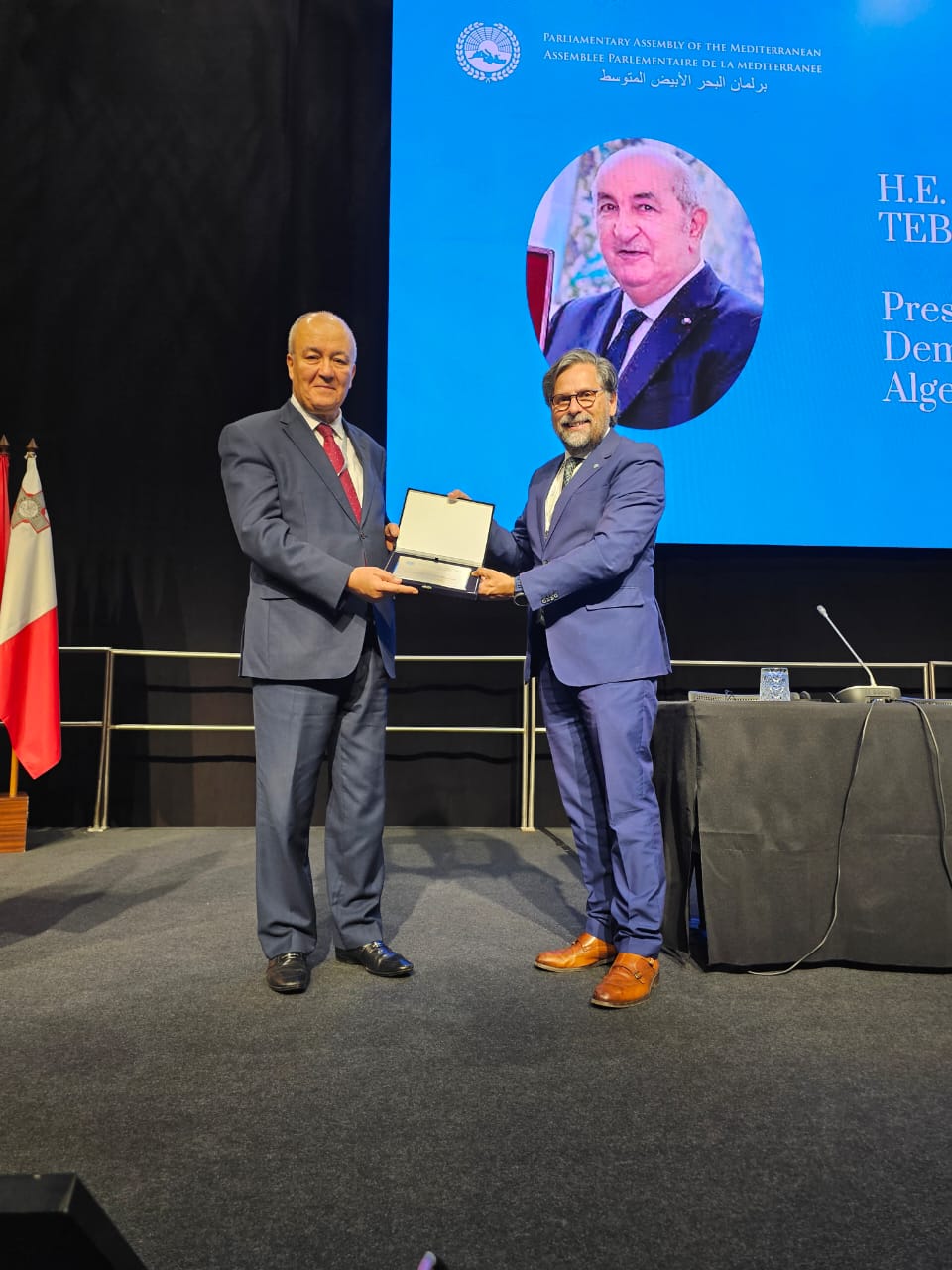 وقد أسدى برلمان البحر الأبيض المتوسط جائزة “التميز من أجل المتوسط”، إلى الرئيس الجزائري عبد المجيد تبون، استلمها نيابة عنه سفير الجزائر بالبرتغال شكيب رشيد قايد، وذلك اعترافا بالدور التضامني الإنساني والمساعدات الطبية التي قدمتها الجزائر لتونس، في إطار مكافحة تداعيات جائحة كوفيد-19.