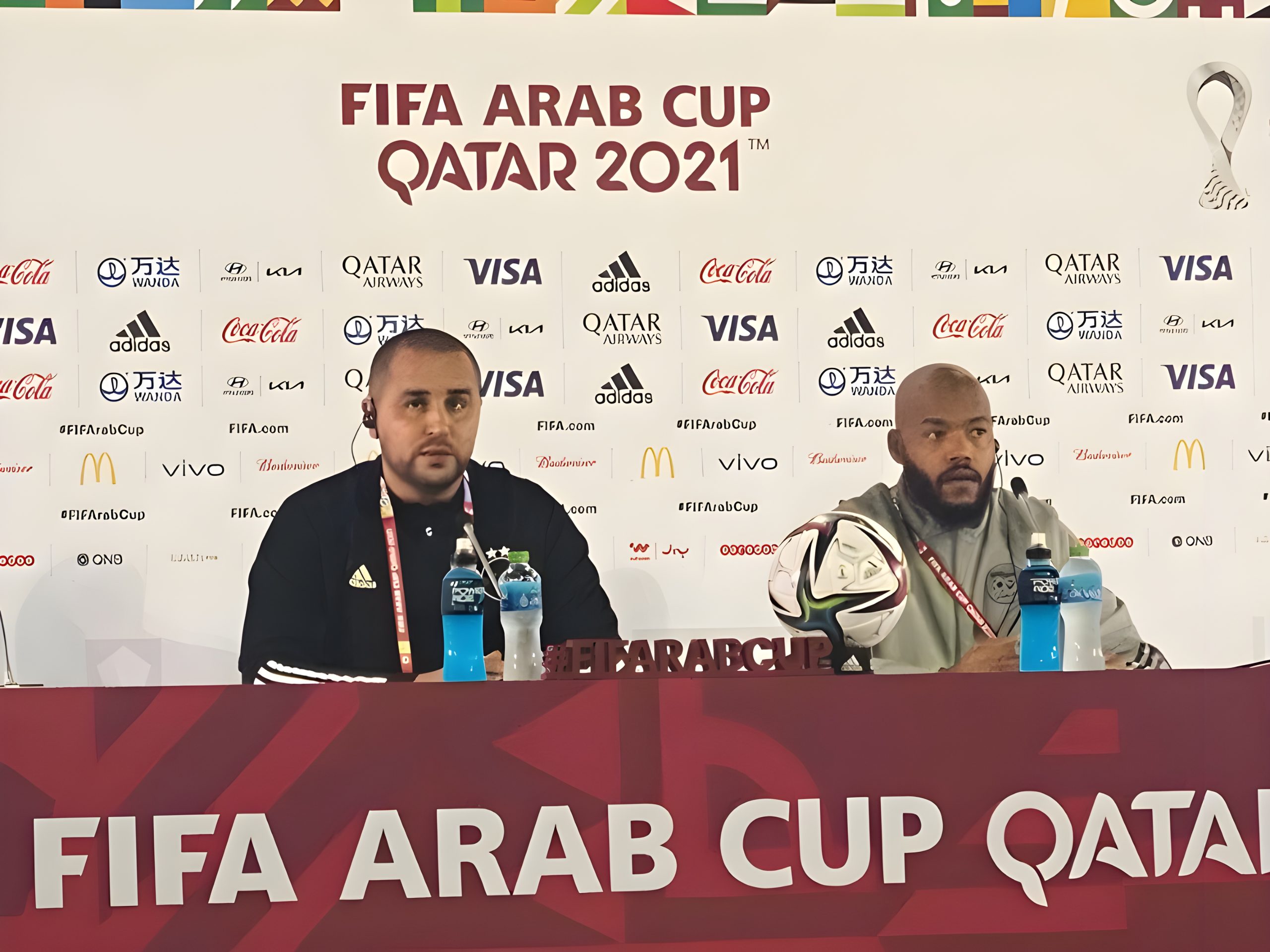 عقد مدرب المنتخب الوطني مجيد بوقرة صبيحة اليوم الثلاثاء ندوة صحفية في قطر رفقة الحارس رايس مبولحي