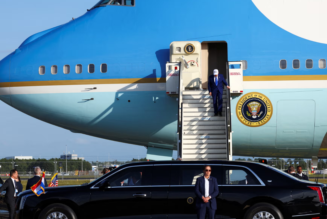 وحطّت الطائرة الرئاسية “إير فورس وان”، التي أقلّت ترامب، في مطار سخيبول في أمستردام، وسيتوجه مباشرة إلى لاهاي، حيث يقيم الملك الهولندي مأدبة عشاء في مستهل اجتماع حلف الناتو، الذي يستمر يومين.
