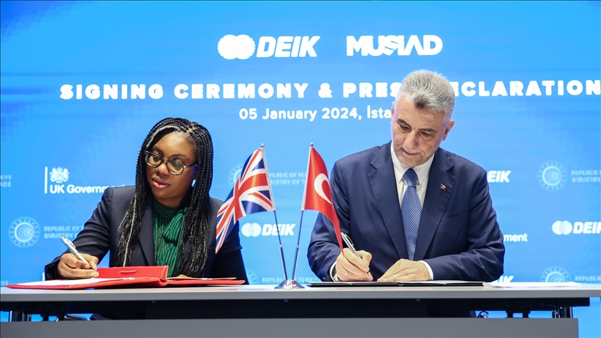 وتم التوقيع من طرف وزير التجارة التركي عمر بولاط ووزيرة الدولة للعمل الدولي والتجارة في المملكة المتحدة كيمي بادينوك، عقب الاجتماع السابع للجنة الاقتصادية والتجارية المشتركة بين تركيا والمملكة المتحدة، في مقر مجلس العلاقات الاقتصادية الخارجية التركي بإسطنبول، أمس الجمعة.