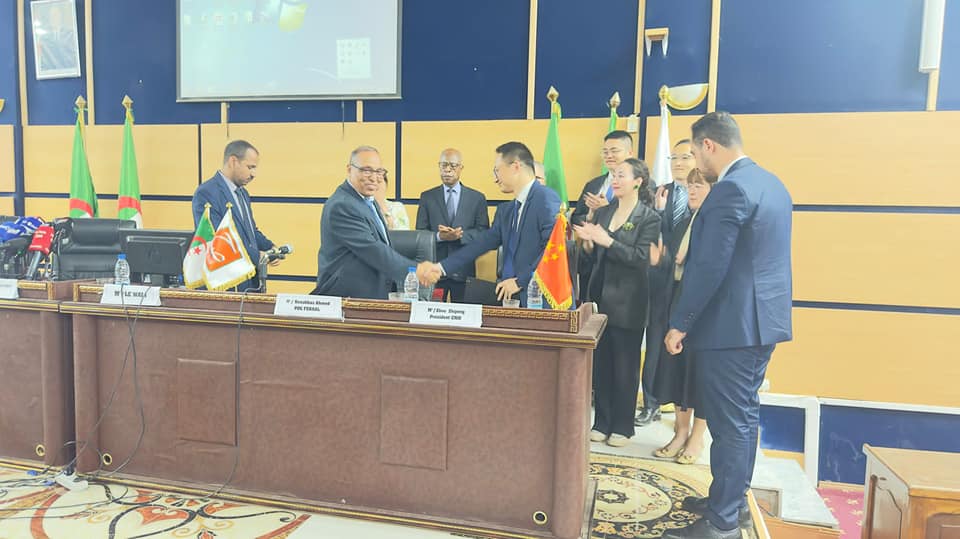 وأفاد بيان لوزارة الطاقة الجزائرية أن الشركة الجزائرية ممثلة بالرئيس المدير العام للشركة، فرع مجمع سونارام، مجمع مناجم الجزائر سابقا، والائتلاف الصيني CMH، الممثل بالمدير العام للائتلاف، زهو زهيبانغ.